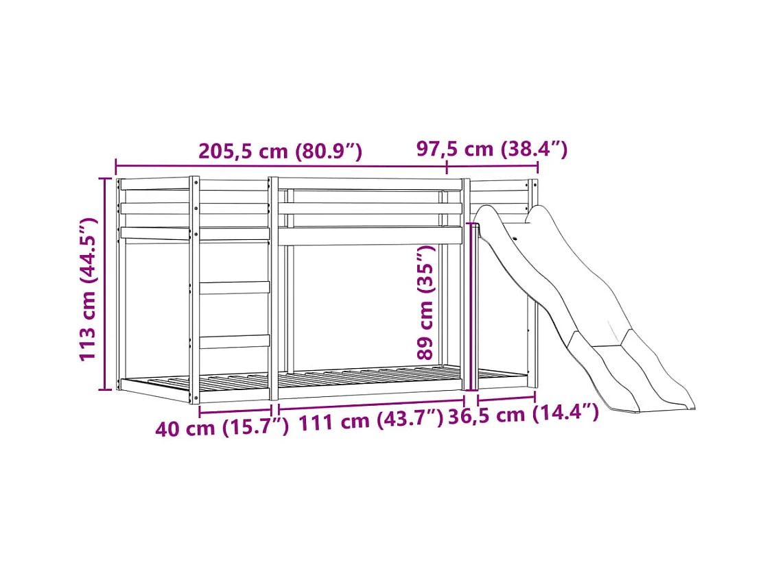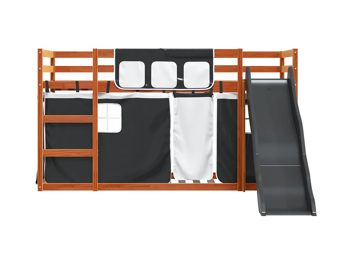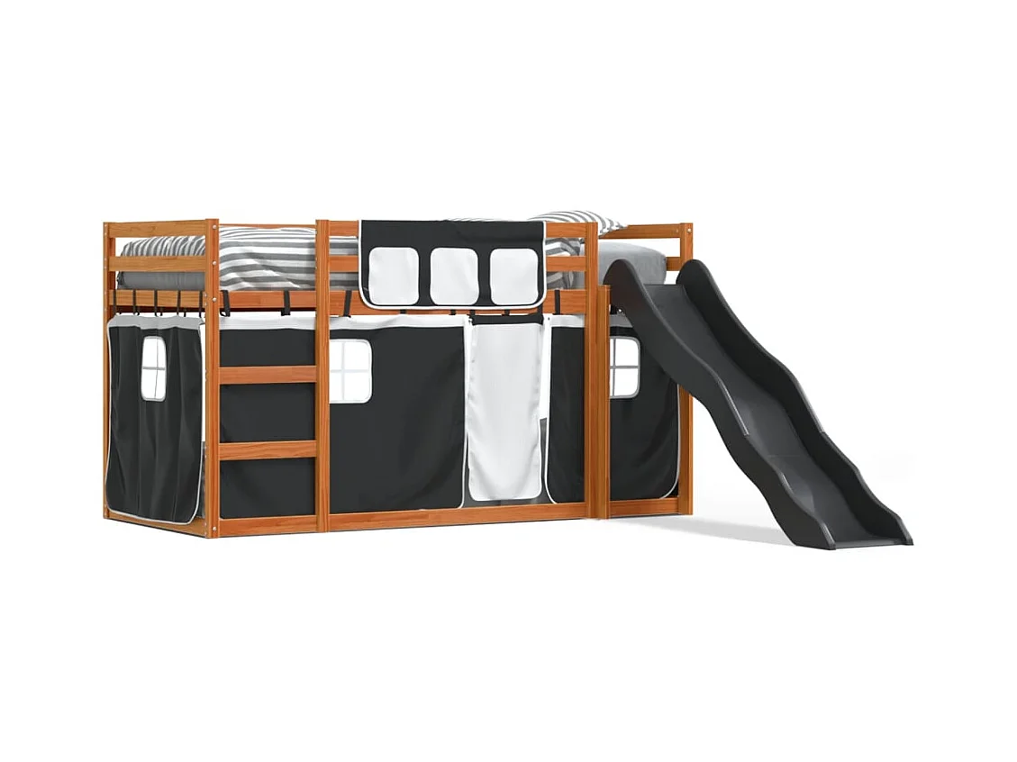 Lit superposé sans matelas avec toboggan blanc noir 90x200 cm