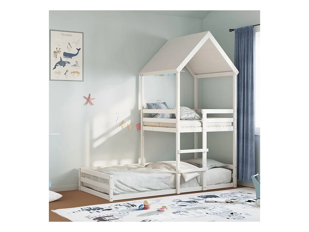 Lit superposé sans matelas blanc 90x200 cm bois de pin massif
