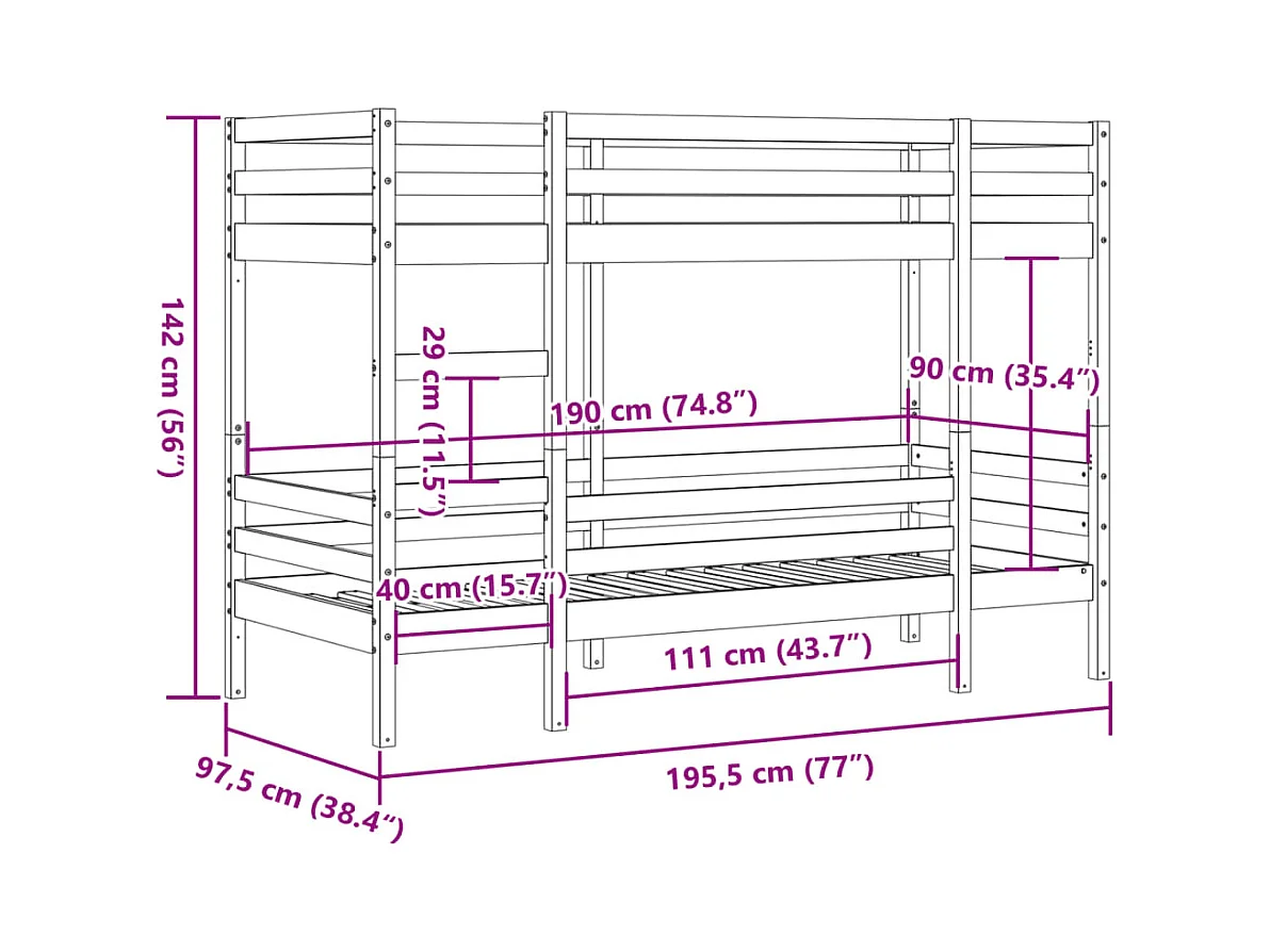 Lit superposé sans matelas cire marron 90x190 cm pin massif