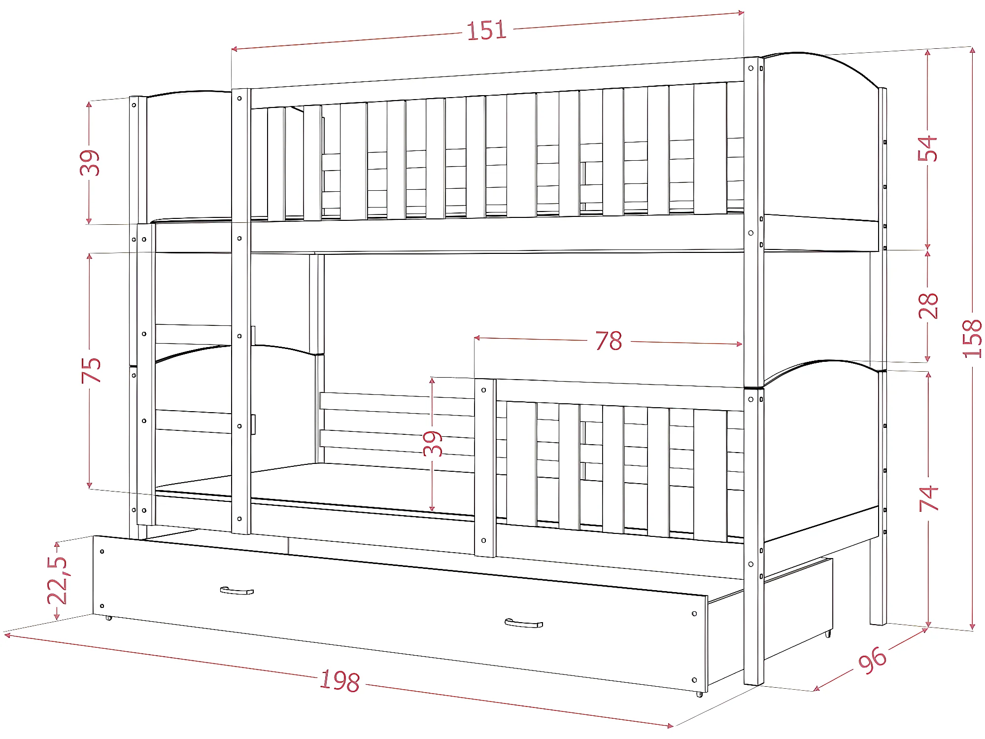 Lit Superposé Tami 90x190 (Sans Matelas) Blanc - gris Livré avec le sommiers et tiroir.