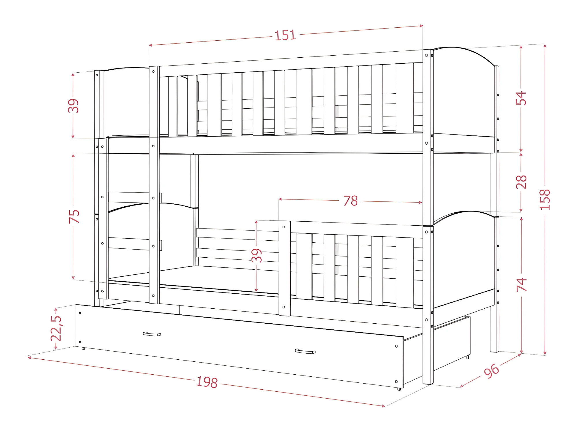 Lit Superposé Tami 90x190 (Sans Matelas) Blanc - rose Livré avec le sommiers et tiroir.