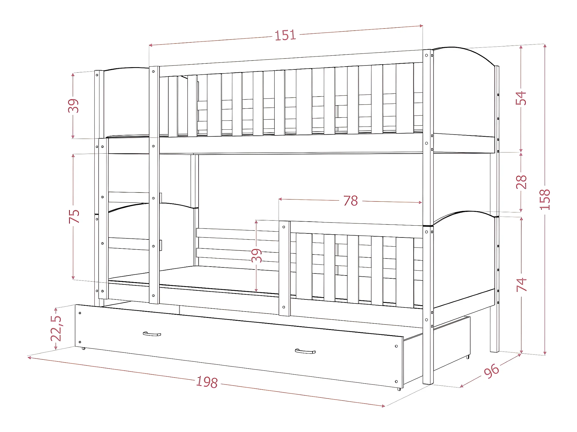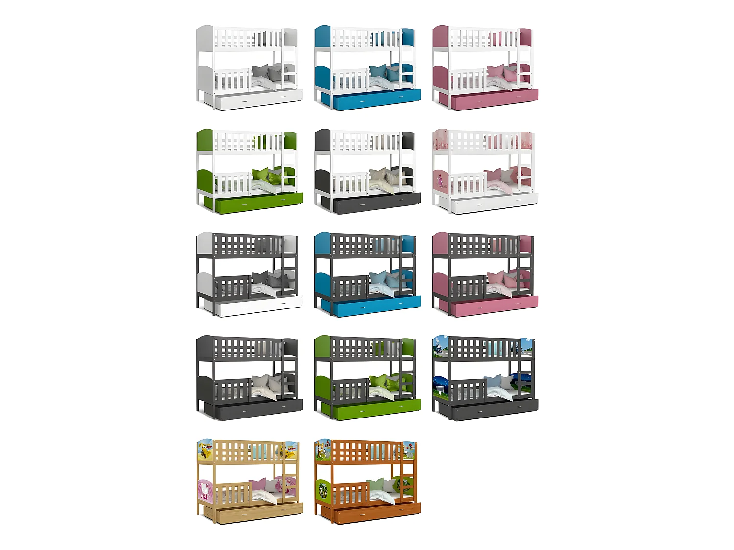 Lit Superposé Tomy 90x190 Blanc - gris Livré avec sommiers, tiroir et matelas en mousse de 7cm