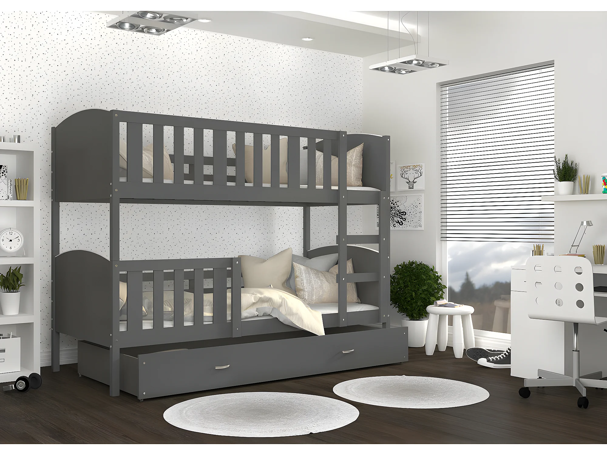 Lit Superposé Tomy 90x190 Gris - gris Livré avec sommiers, tiroir et matelas en mousse de 7cm