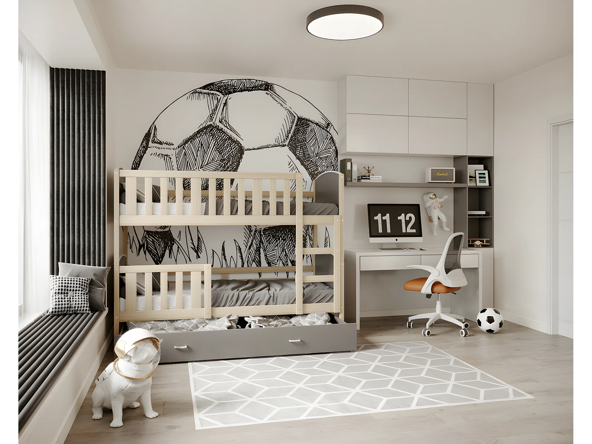 Lit Superposé Tomy 90x190 Pin - gris Livré avec sommiers, tiroir et matelas en mousse de 7cm