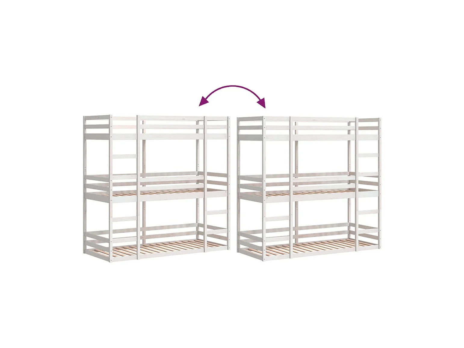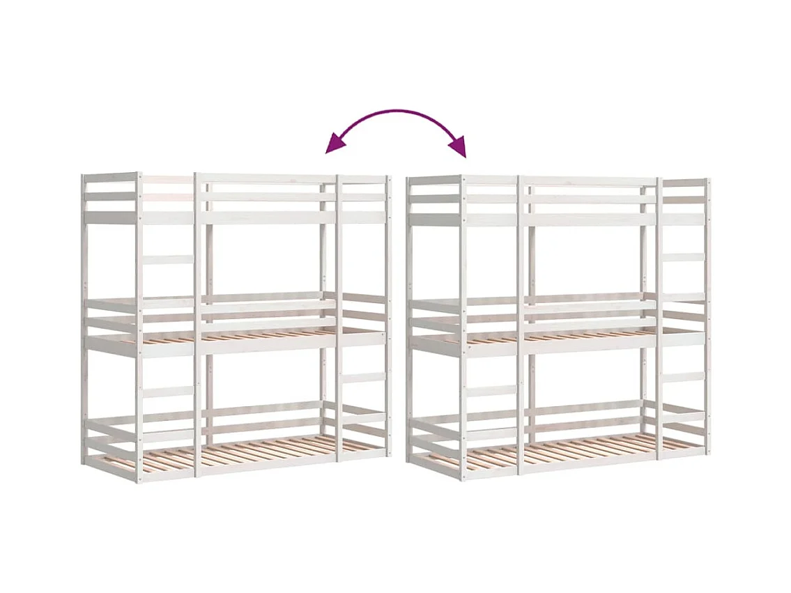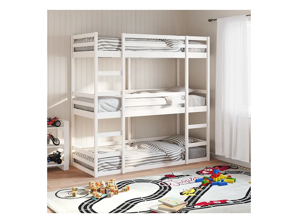 Lit superposé triple sans matelas 90x190 cm bois de pin massif