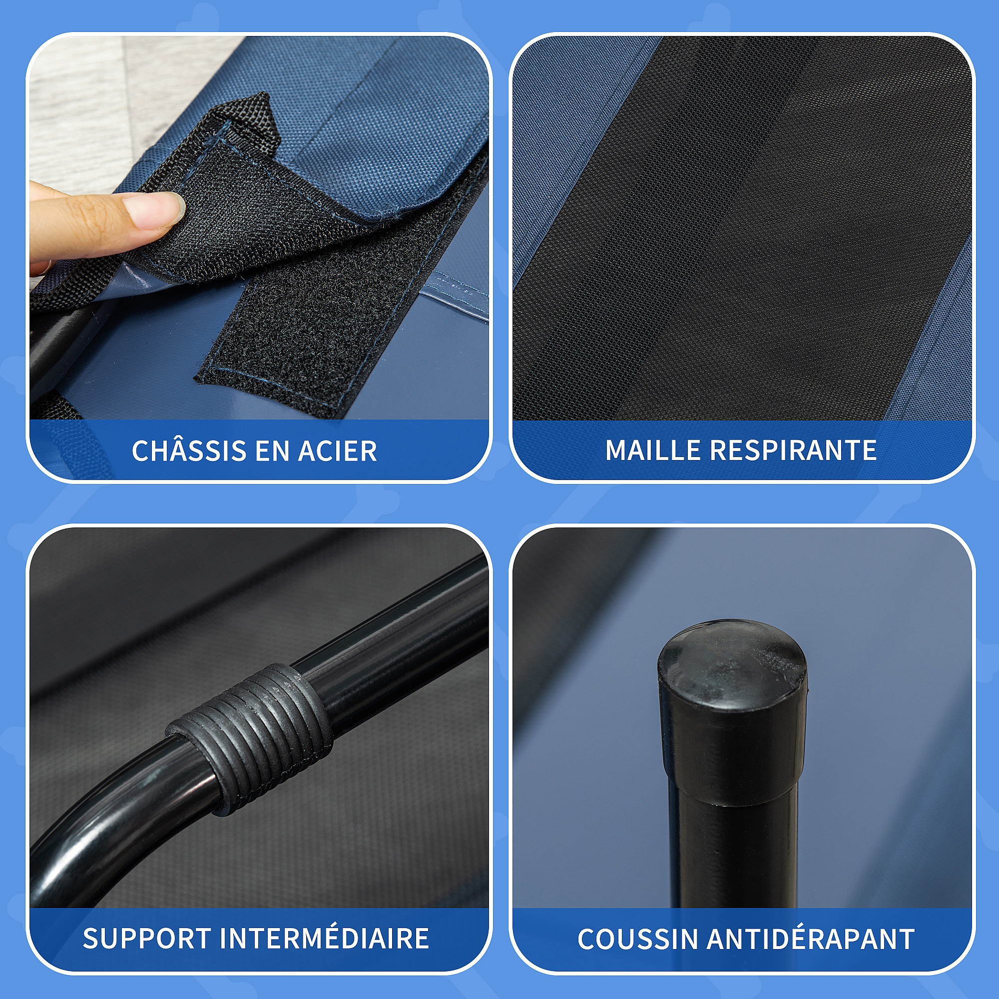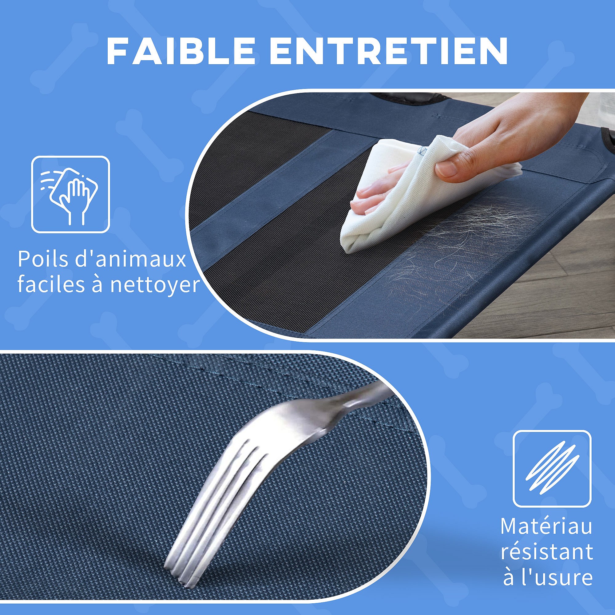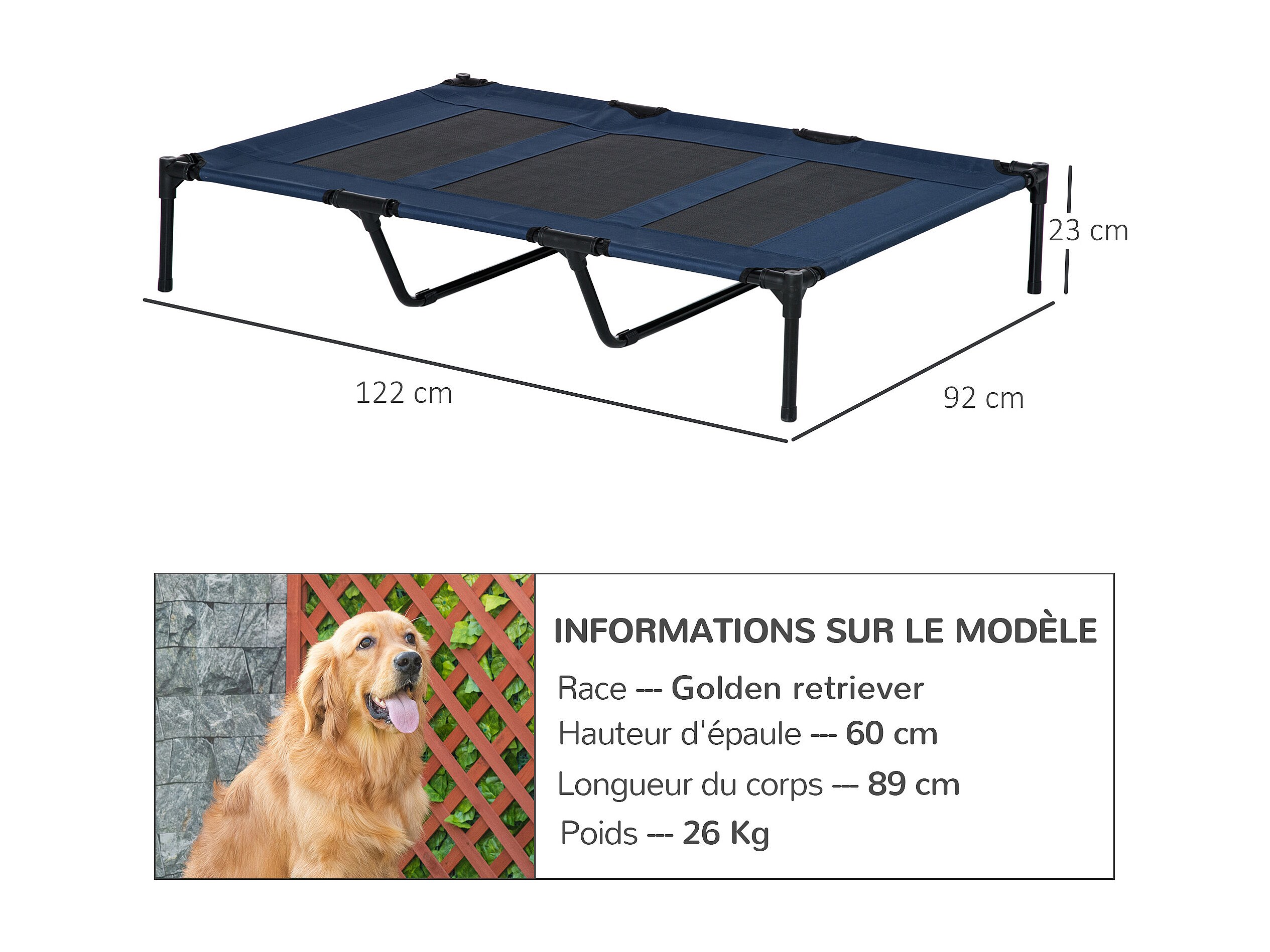 Lit sur pieds XXL pour chien chat lit de camp animal lit surélevé tissu oxford textilène micro-perforé 92L x 76l x 18H cm bleu marine