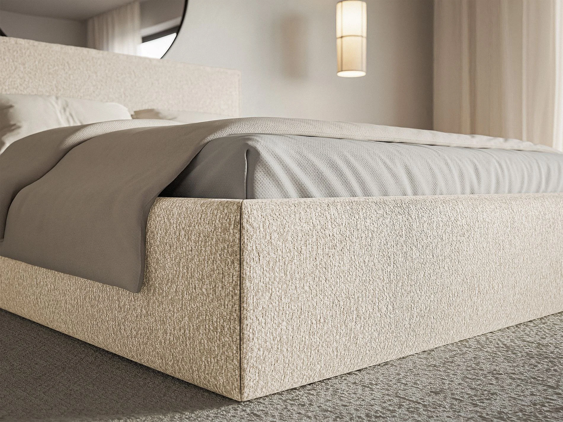 Lit tapissé 140×200- chenille - beige clair - SOFTIE SLIM