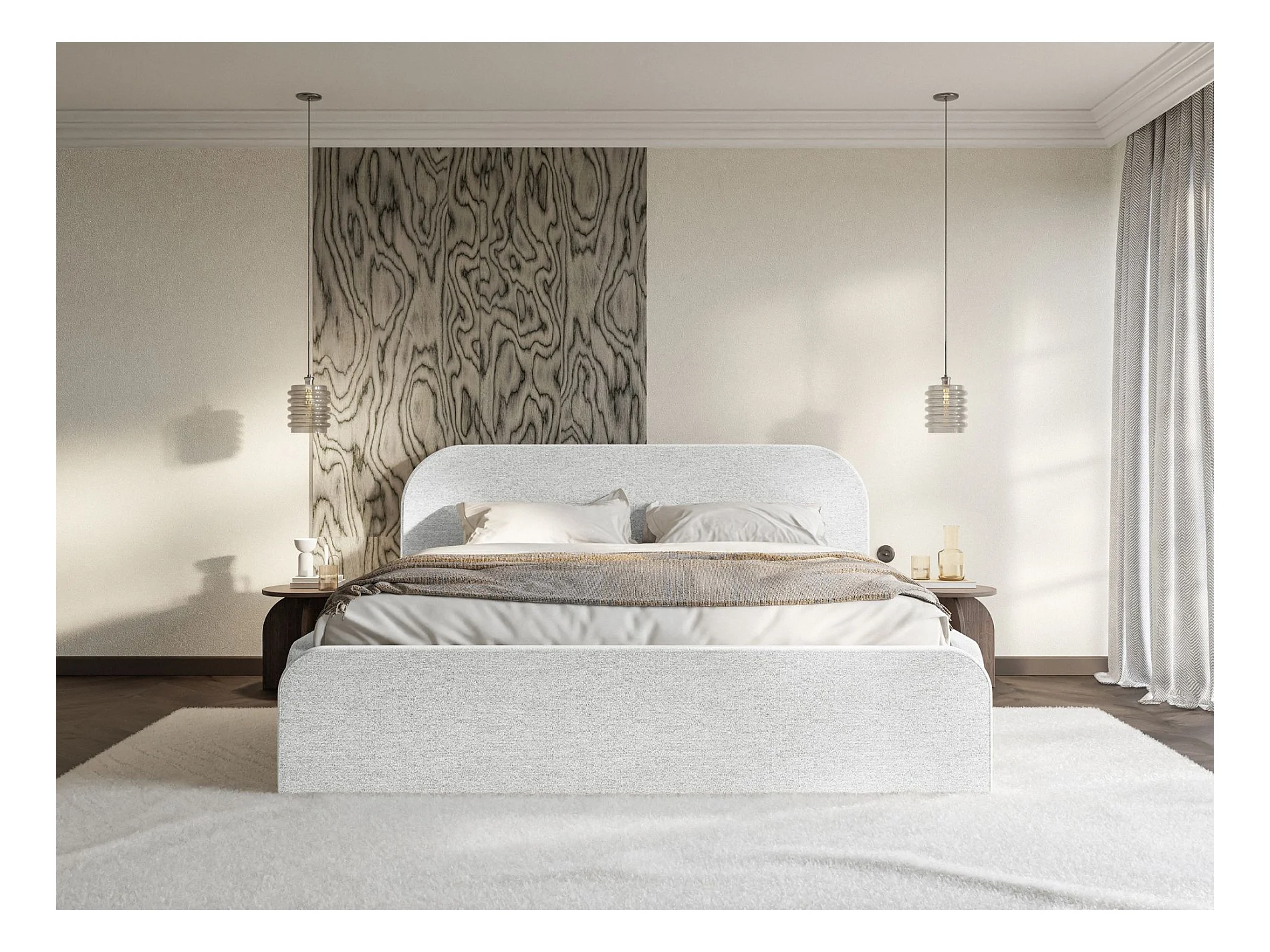 Lit tapissé – 140x200 cm – en tissu chenille gris clair – UMIKE