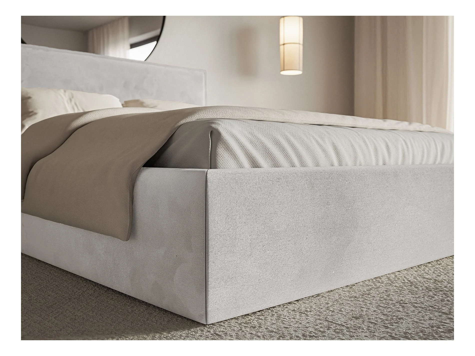 Lit tapissé 160×200 avec coffre et sommier - velours - gris clair - SOFTIE SLIM