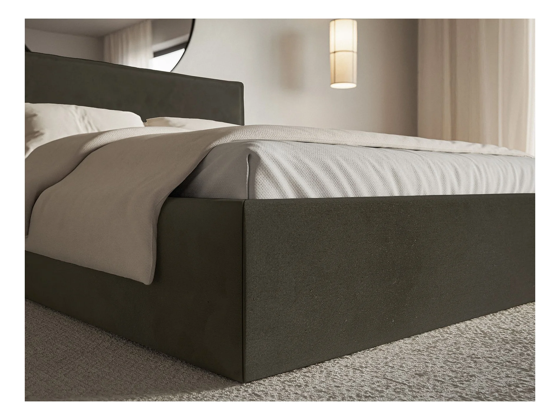 Lit tapissé 160×200 avec coffre et sommier - velours - vert foncé - SOFTIE SLIM