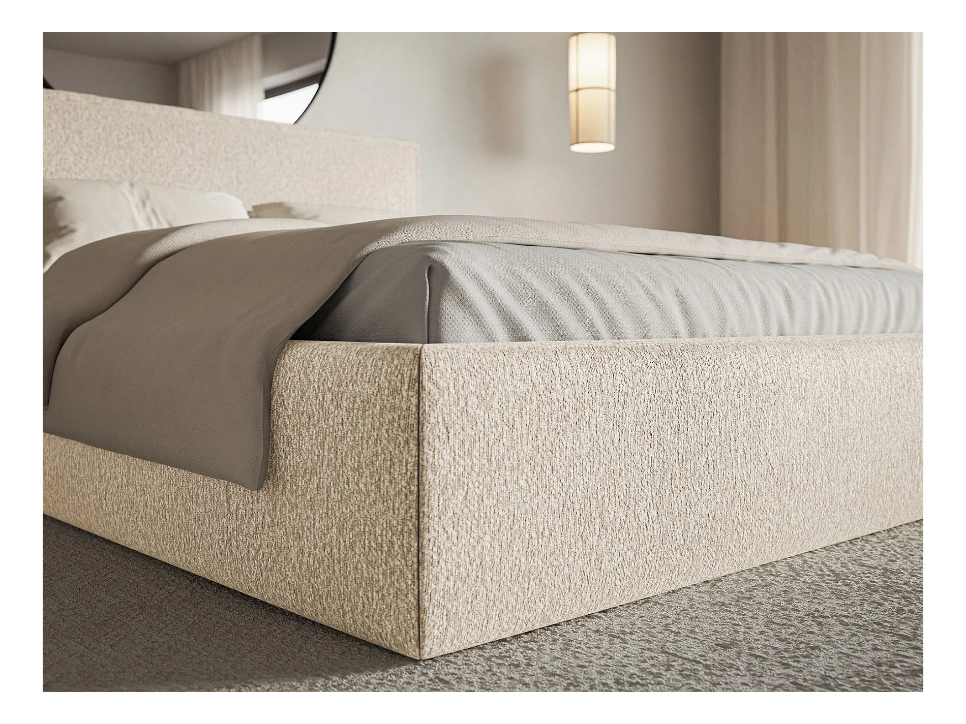 Lit tapissé 200×200- chenille - beige clair - SOFTIE SLIM