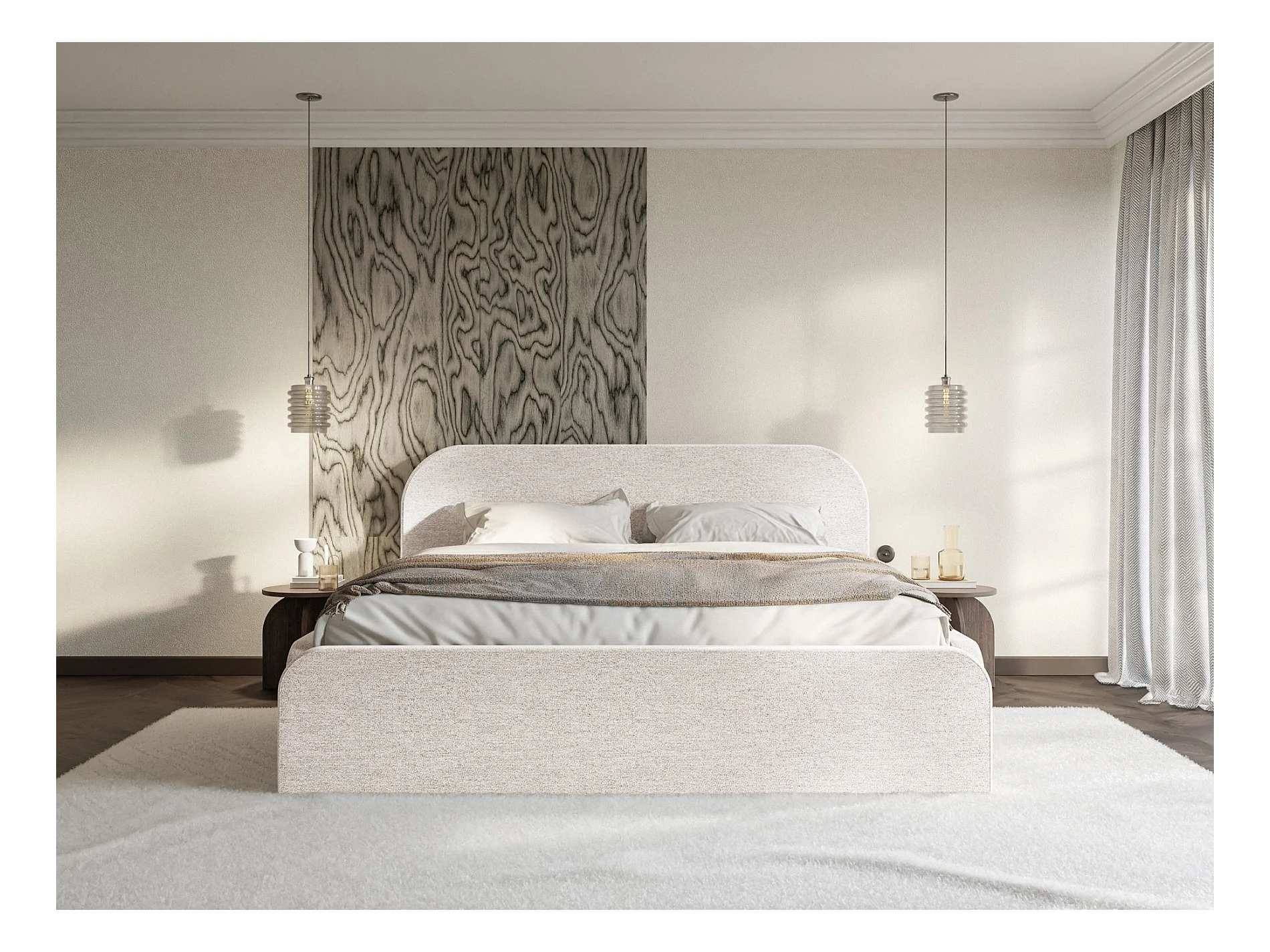 Lit tapissé – 200x200 cm – en tissu chenille beige clair – UMIKE