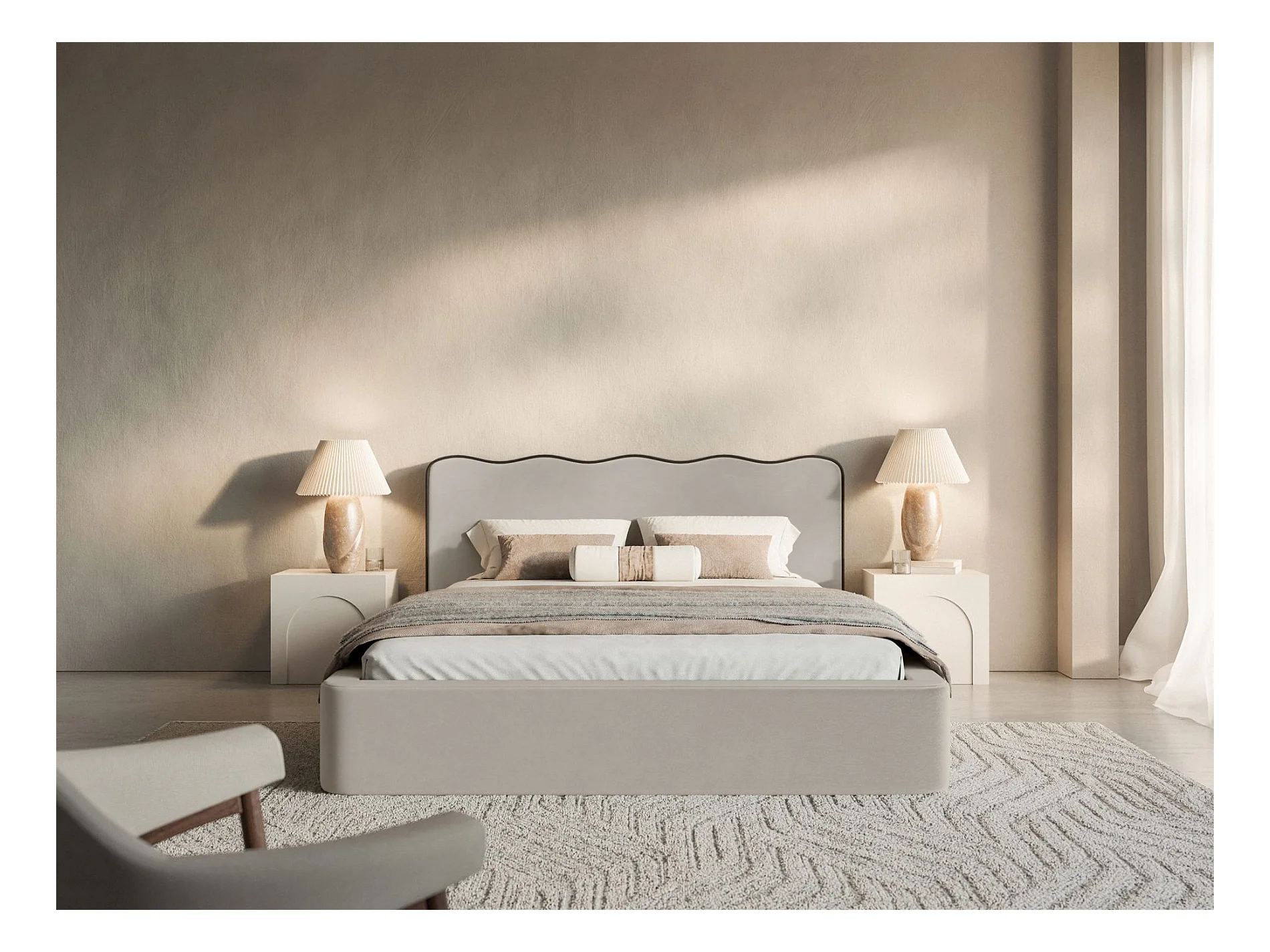 Lit tapissé – 200x200 cm – en velours beige – DUNEY