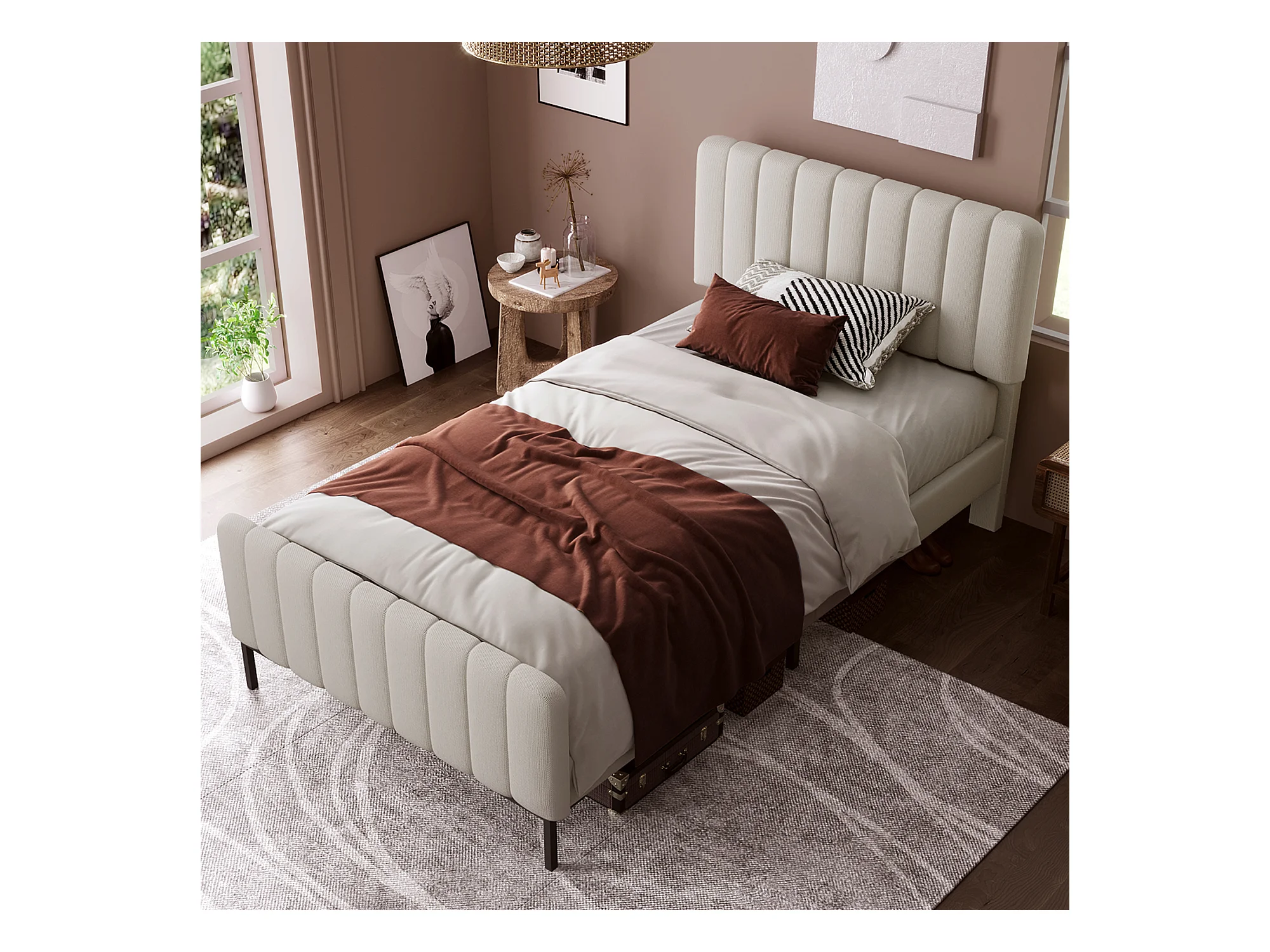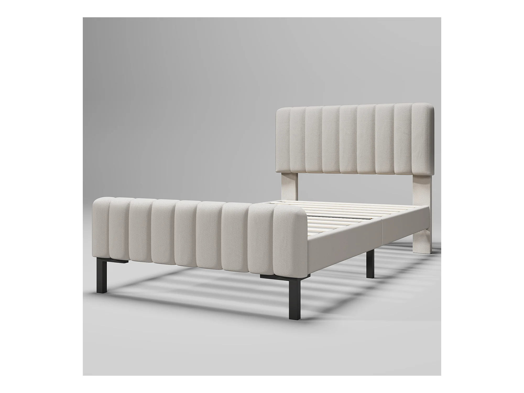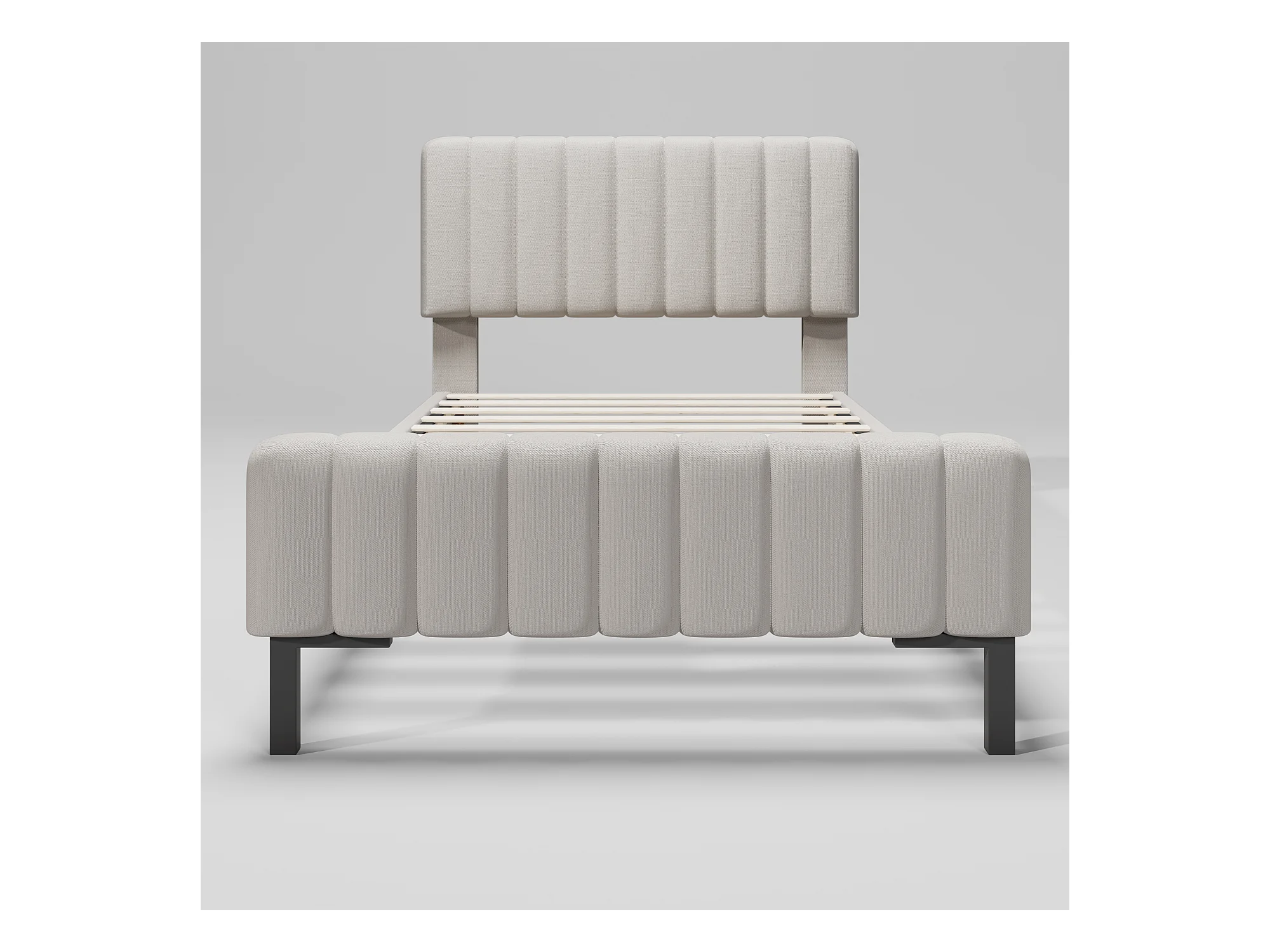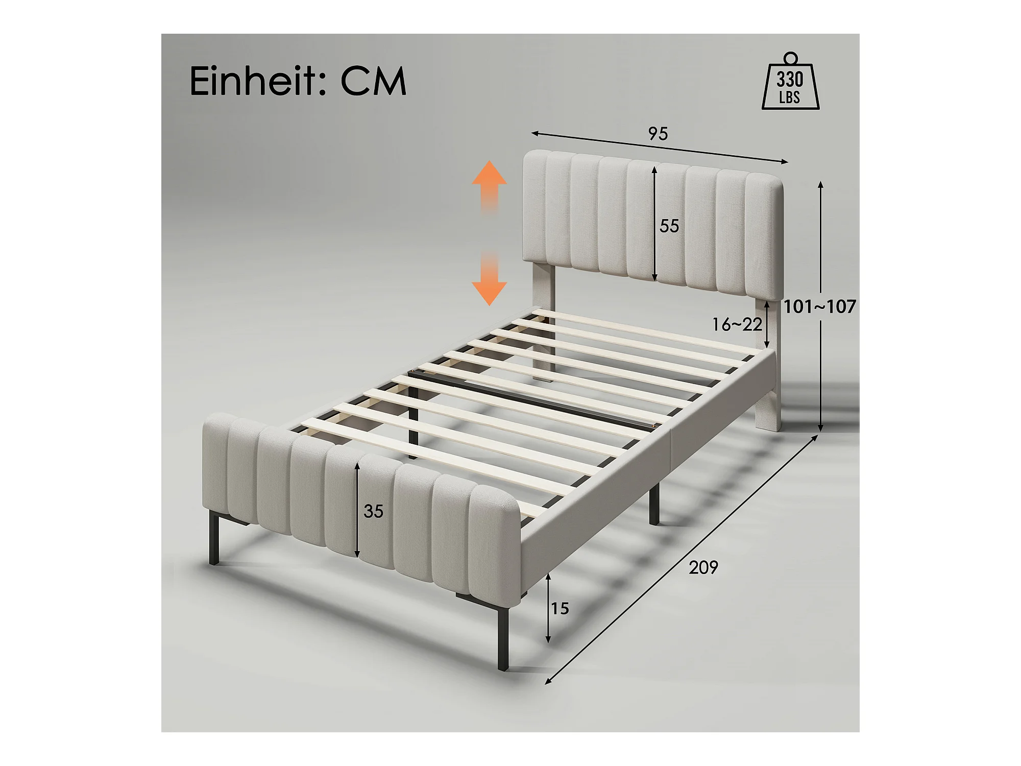 Lit tapissé - 90x200 cm - Lit simple avec sommier à lattes et tête de lit réglable - Matière lin, gris-beige