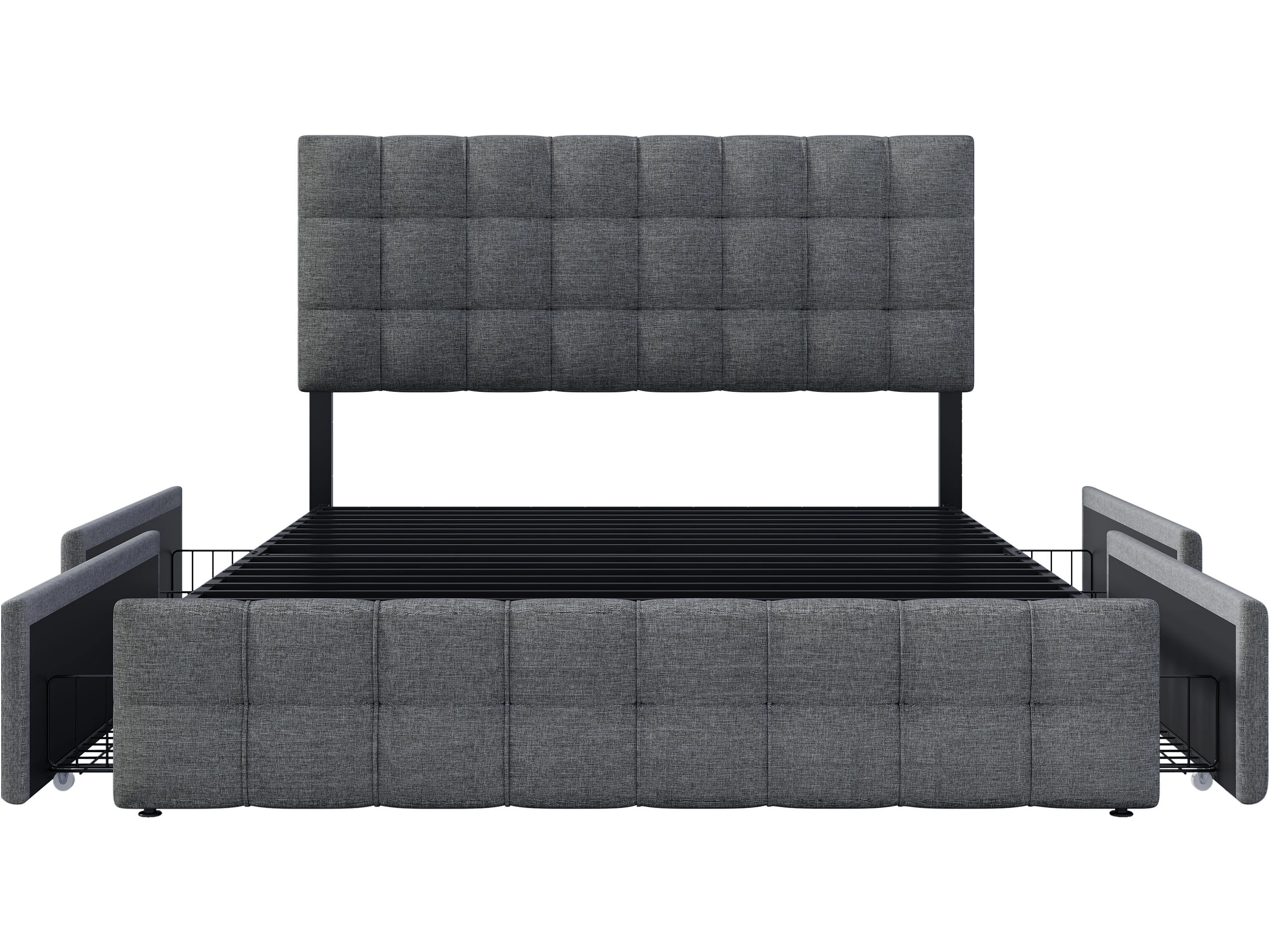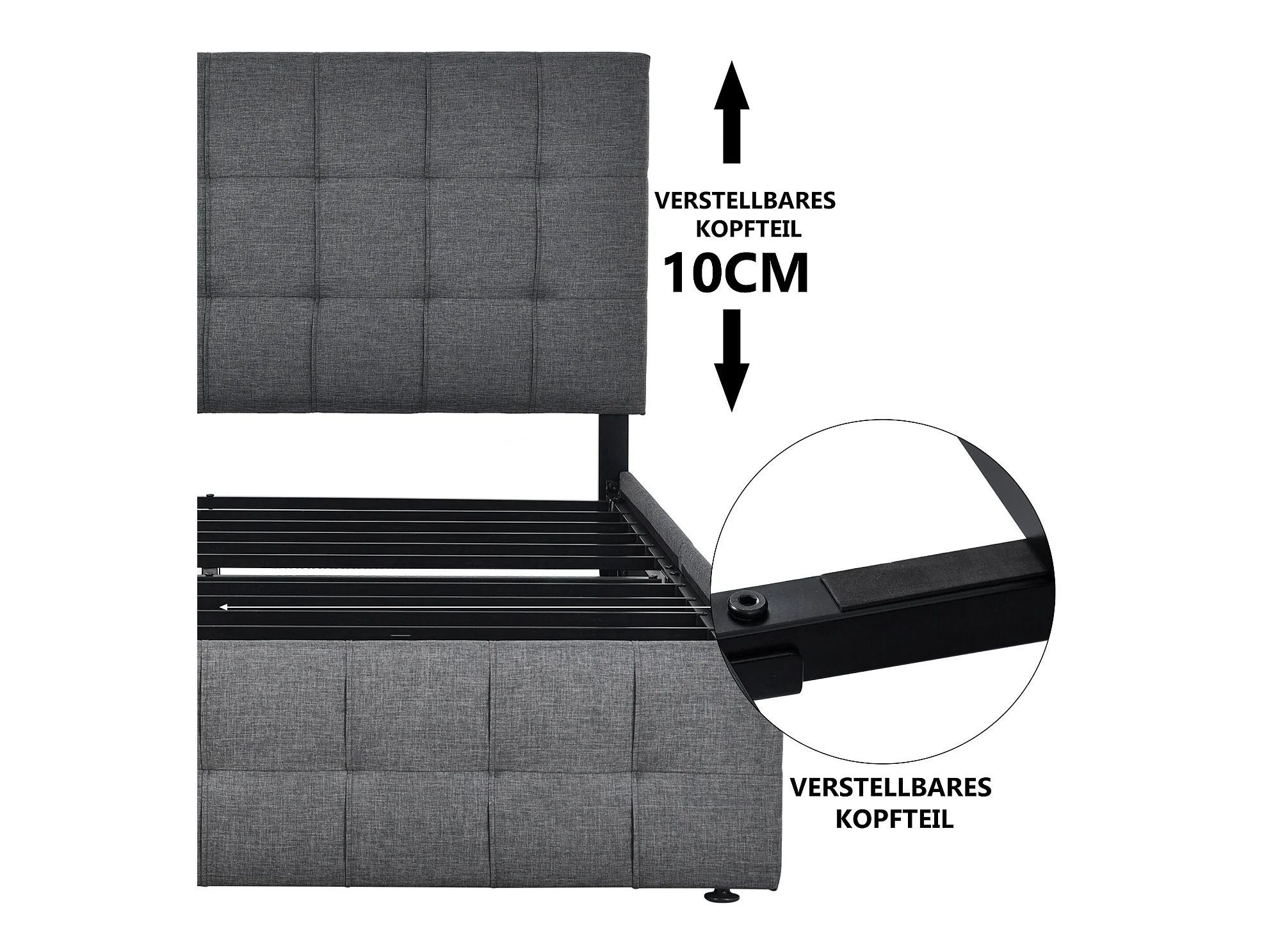 Lit tapissé avec 4 tiroirs et matelas à ressorts, gris 140x200 cm - Sweiko