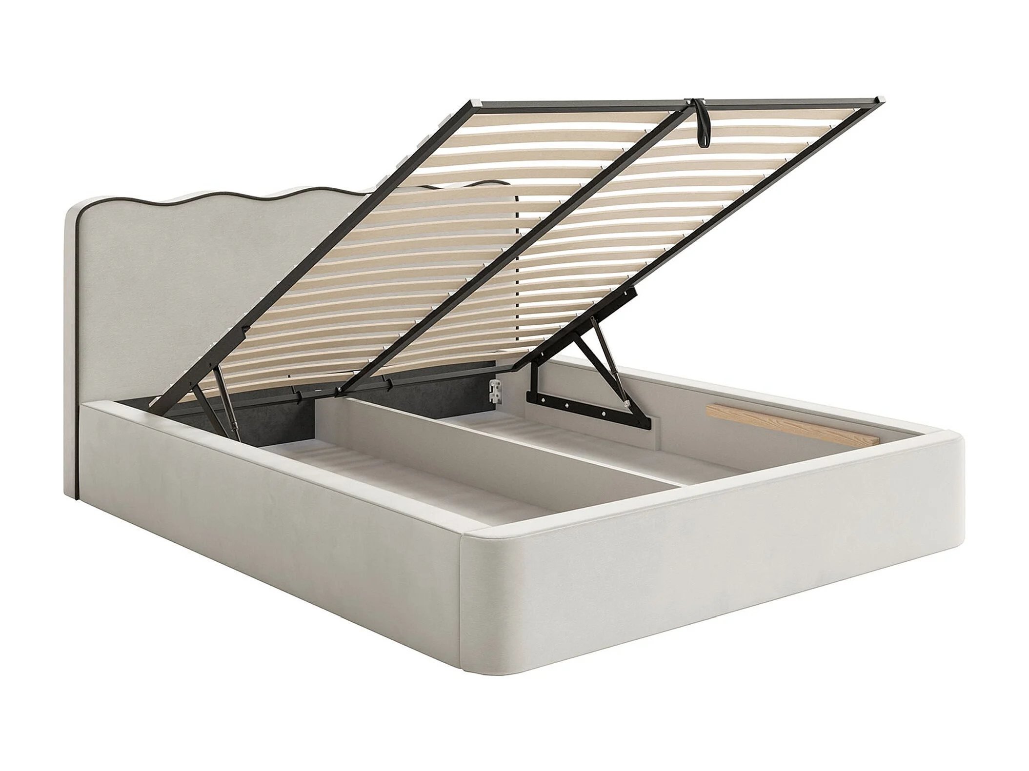 Lit tapissé avec coffre – 140x200 cm – en velours beige clair – DUNEY