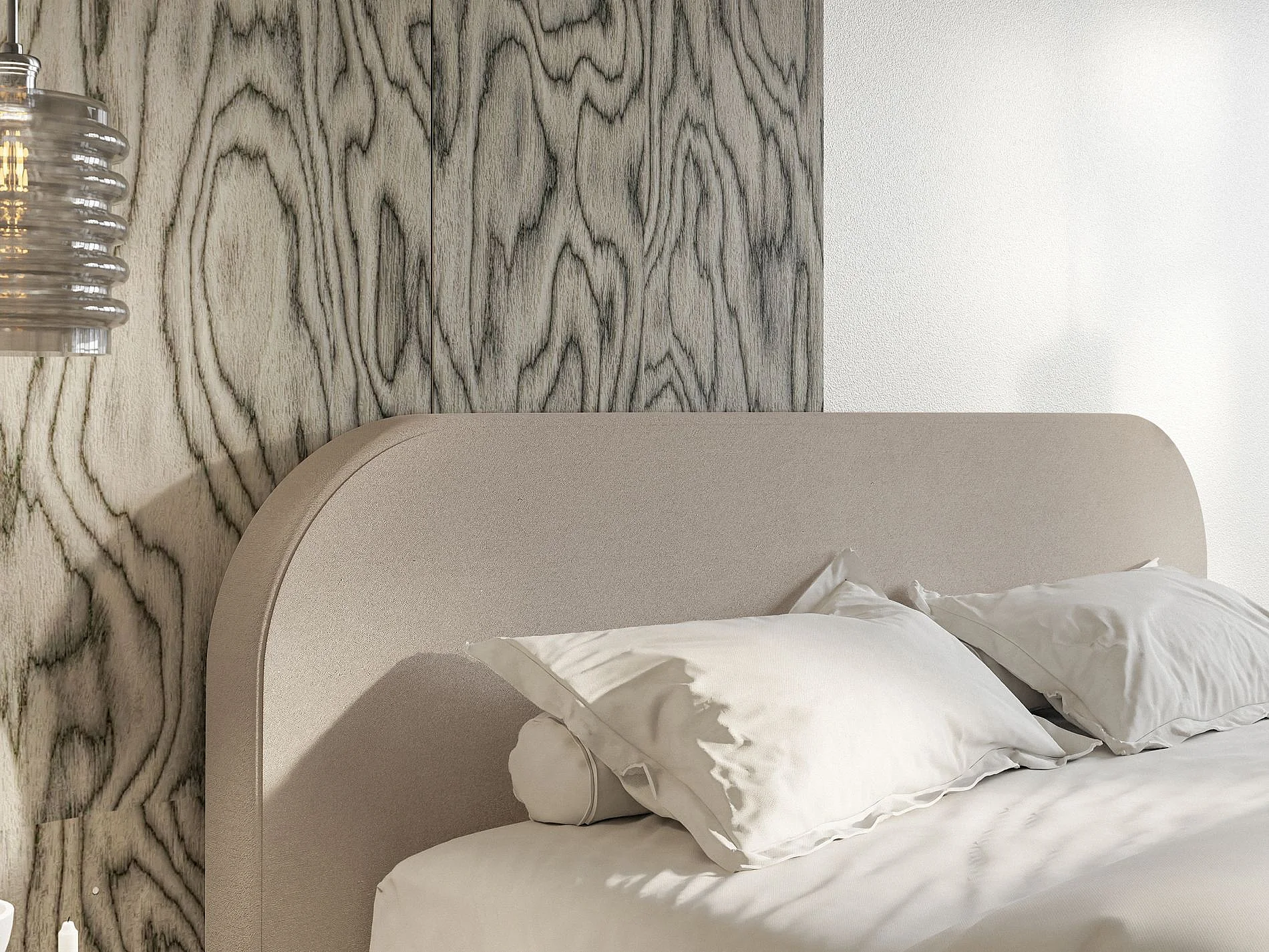 Lit tapissé avec coffre – 140x200 cm – en velours beige – UMIKE