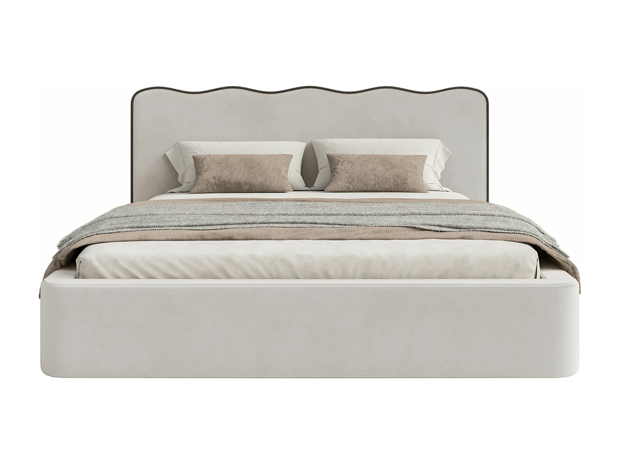Lit tapissé avec coffre – 180x200 cm – en velours beige clair – DUNEY