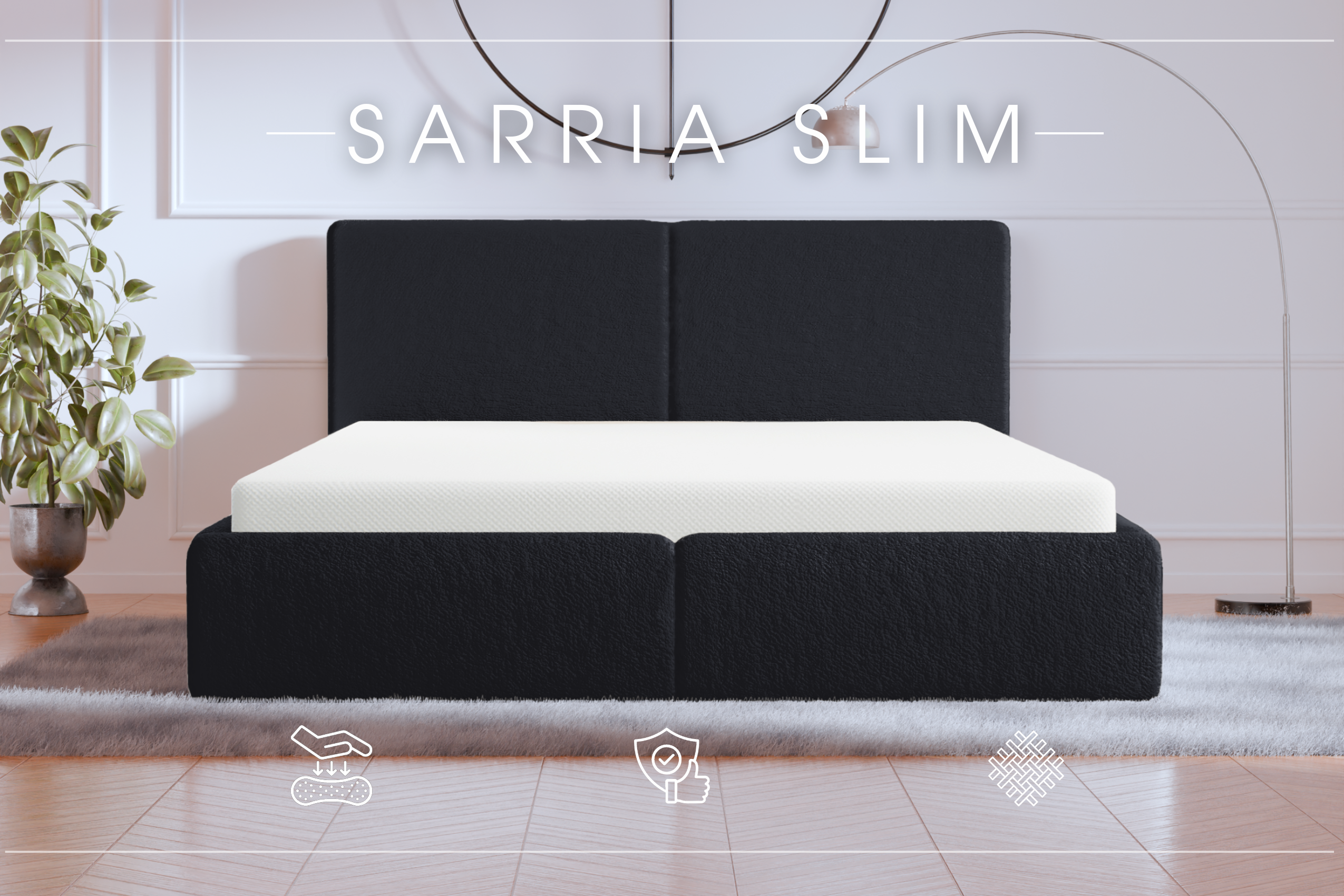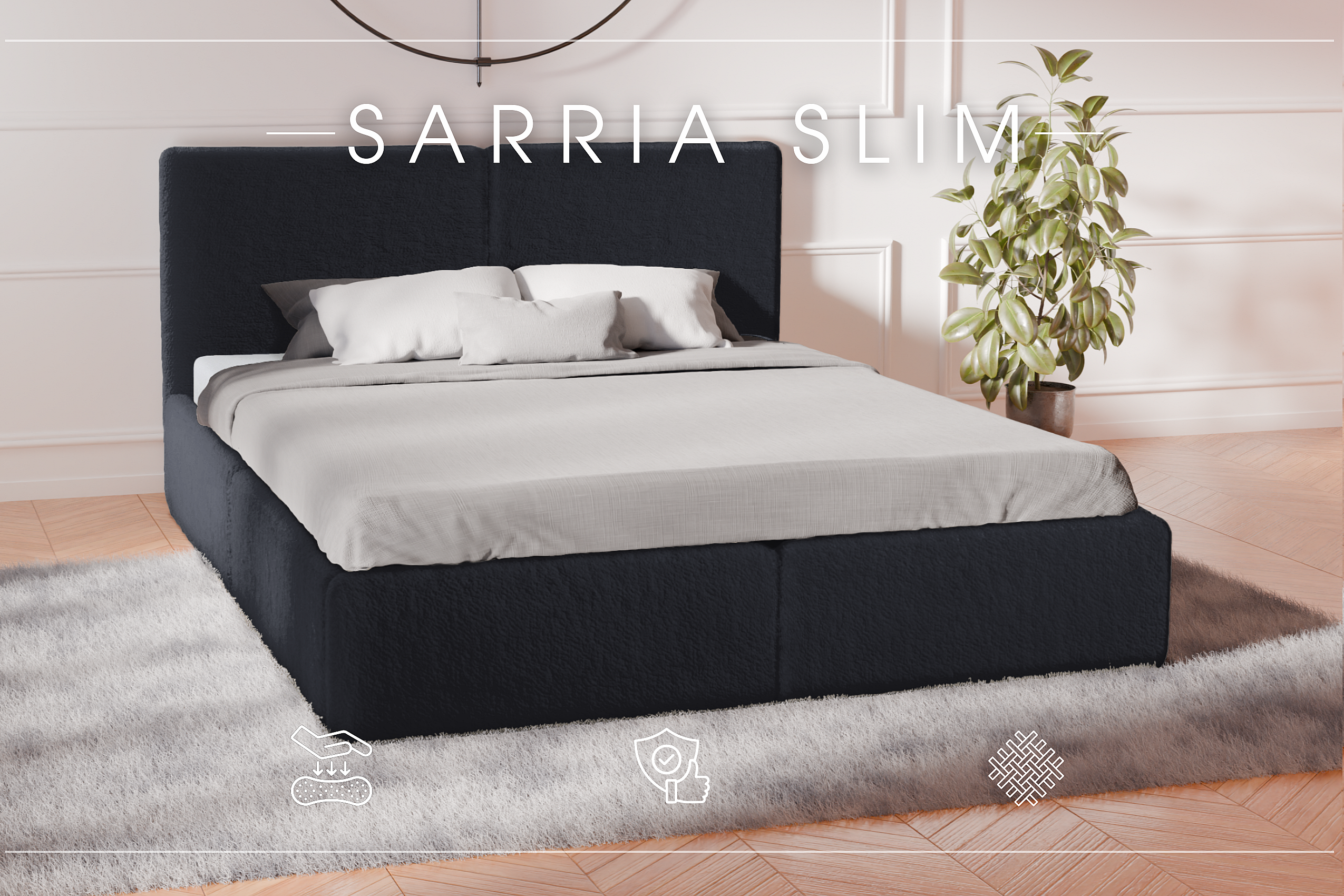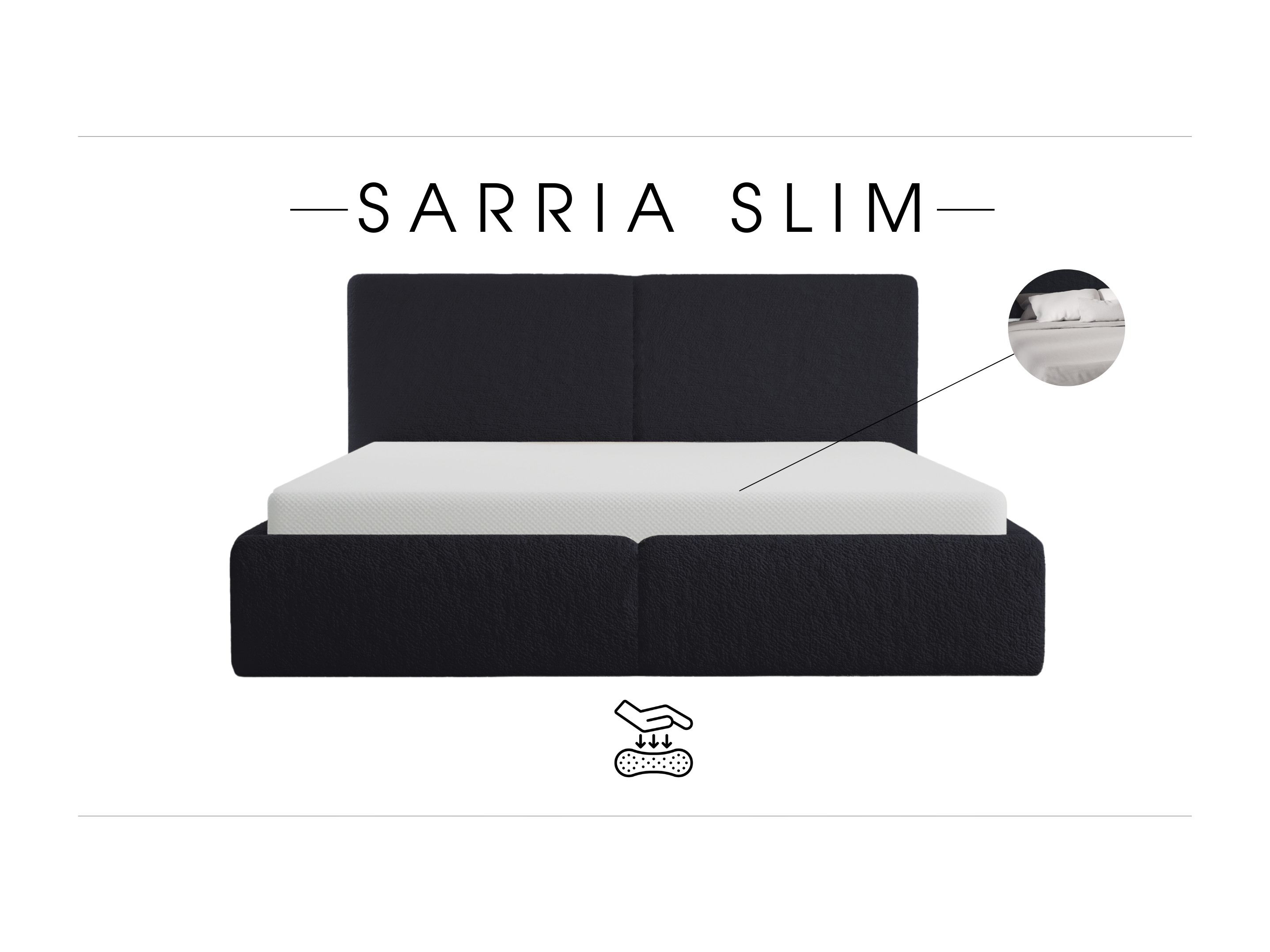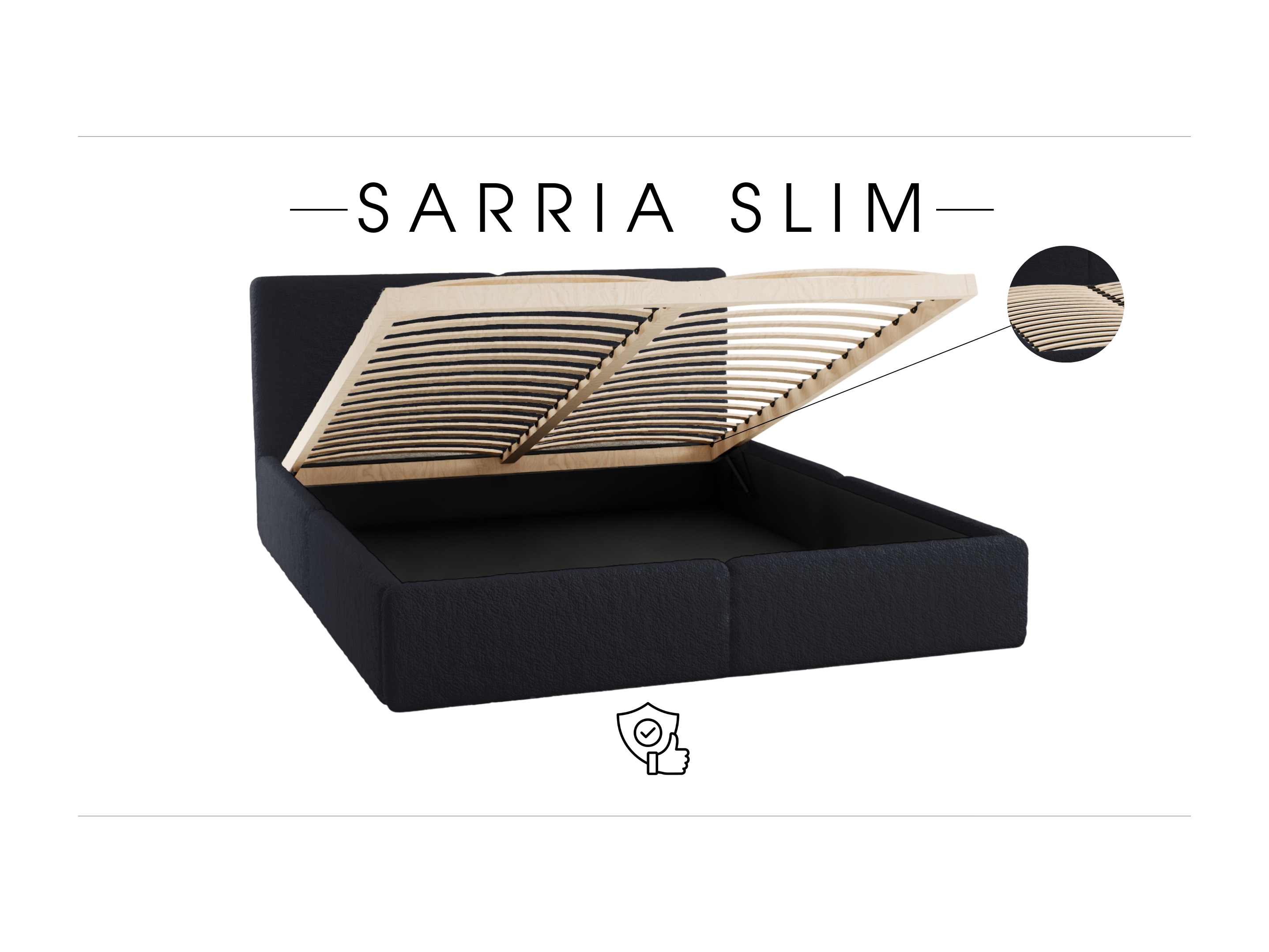 LIT TAPISSÉ avec coffre de rangement Matelas Sarria Slim Noir (Anthology 19) 120x200 cm