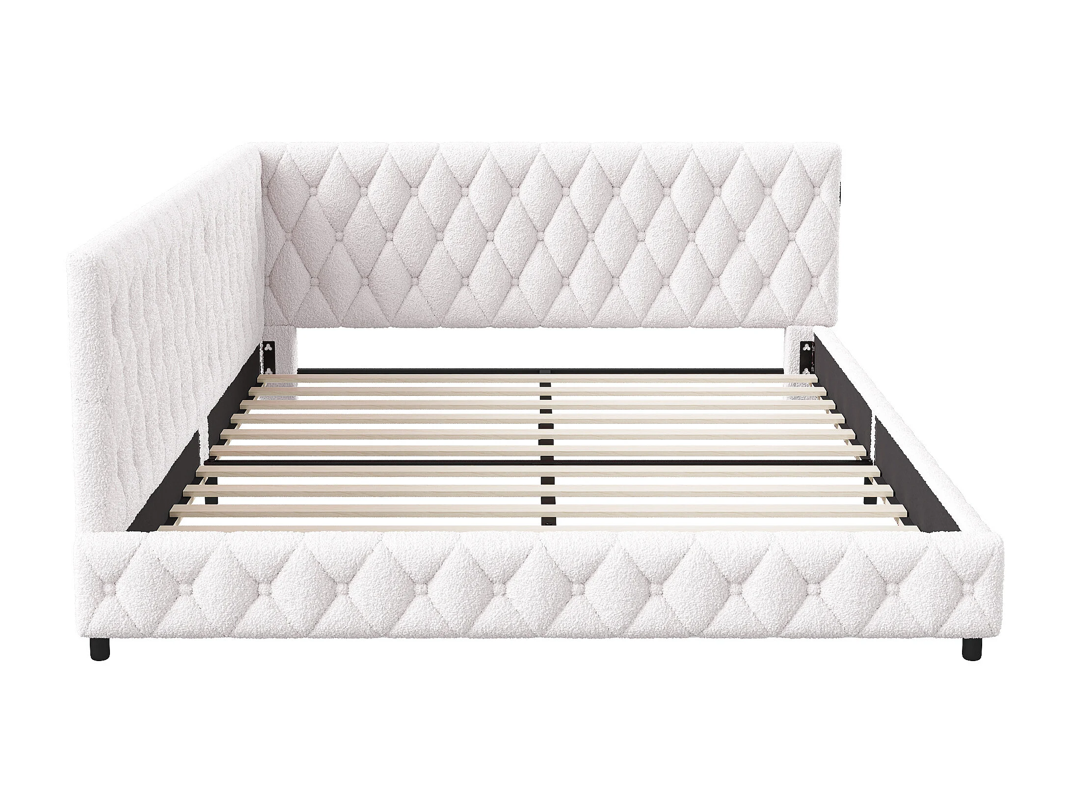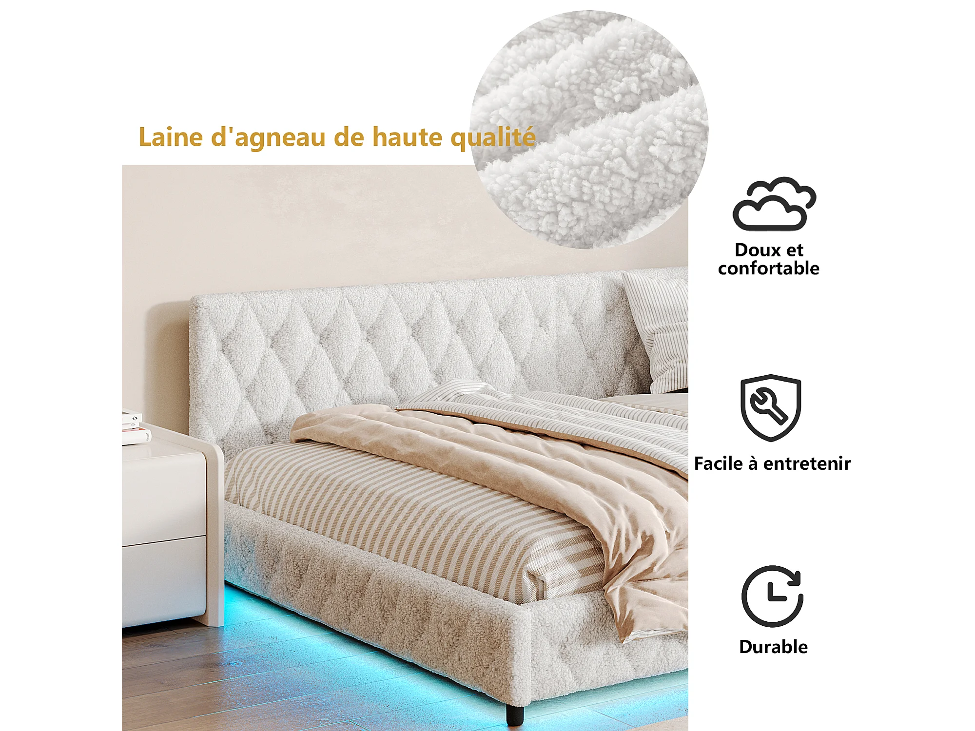Lit tapissé multifonction 140x200 cm – Canapé-lit avec éclairage LED et port USB, idéal pour les chambres d'amis - Beige