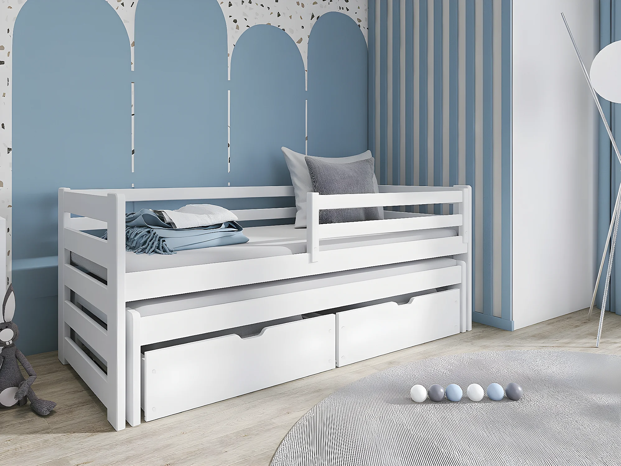 Lit Vista 113, Simple avec un lit gigogne supplémentaire, Unique, Blanc, 80x200|80x190,