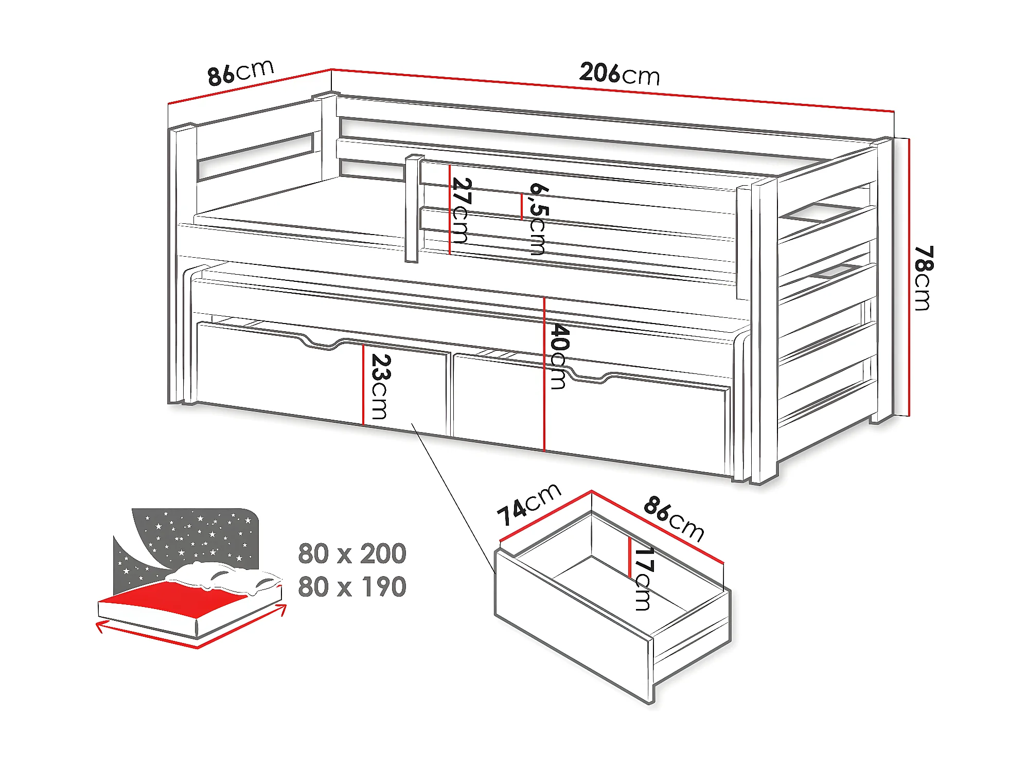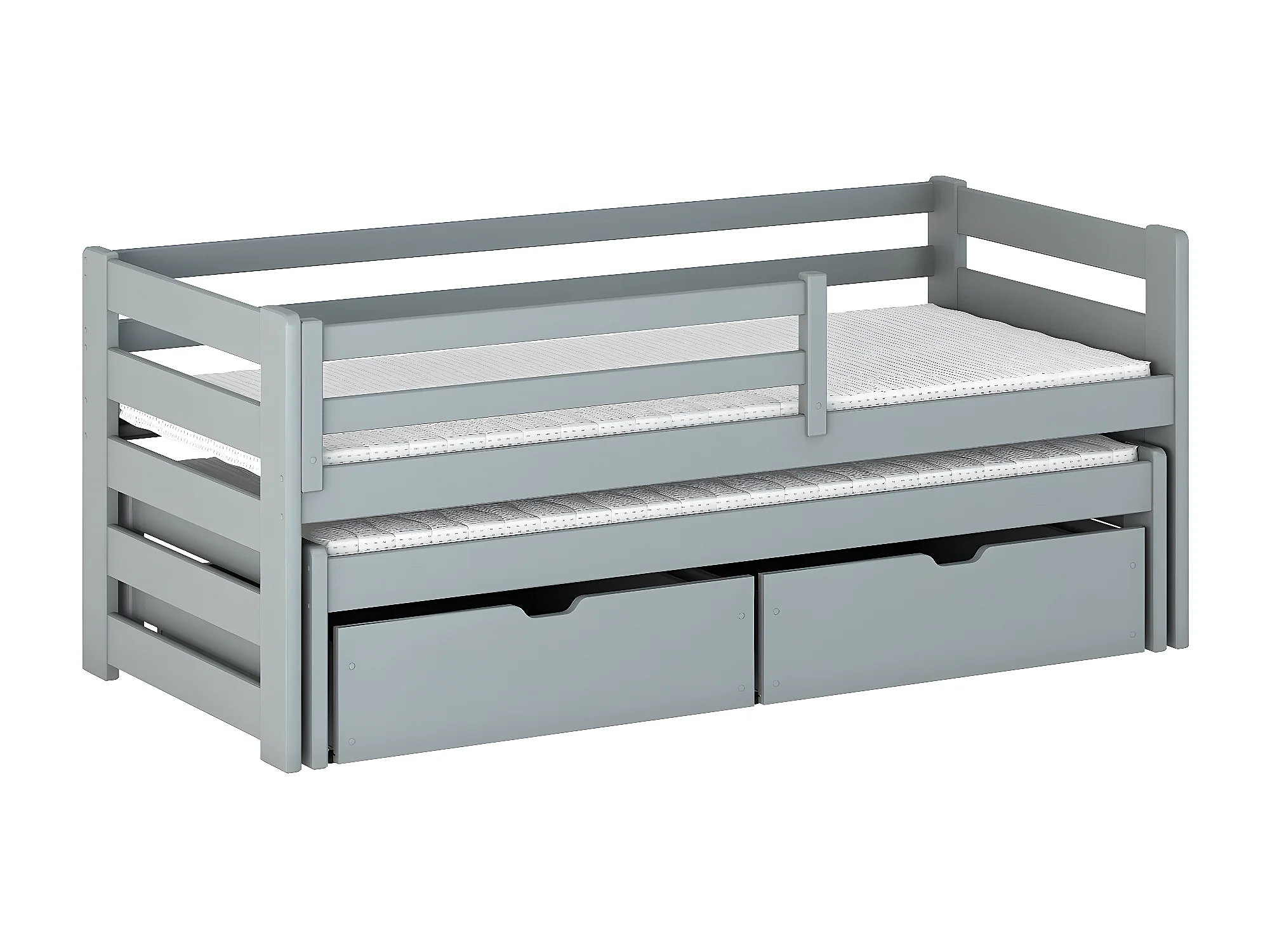 Lit Vista 113, Simple avec un lit gigogne supplémentaire, Unique, Gris, 80x200|80x190,