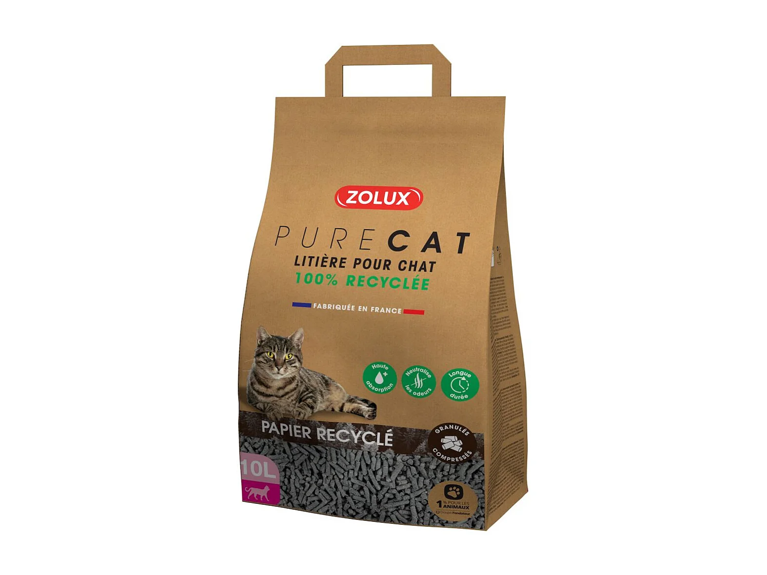 Litière éco conçue en papier recyclé Purecat 10 litres