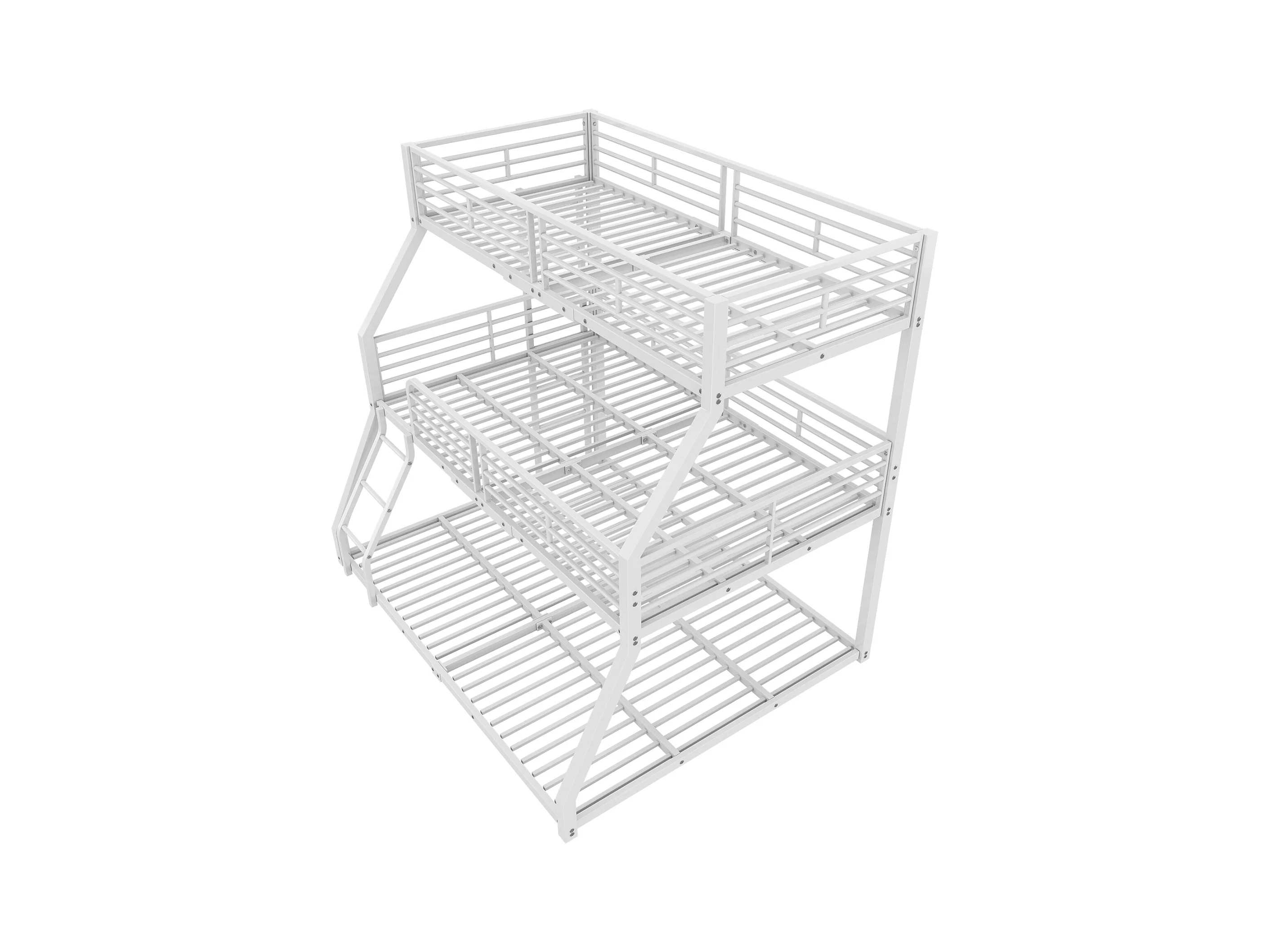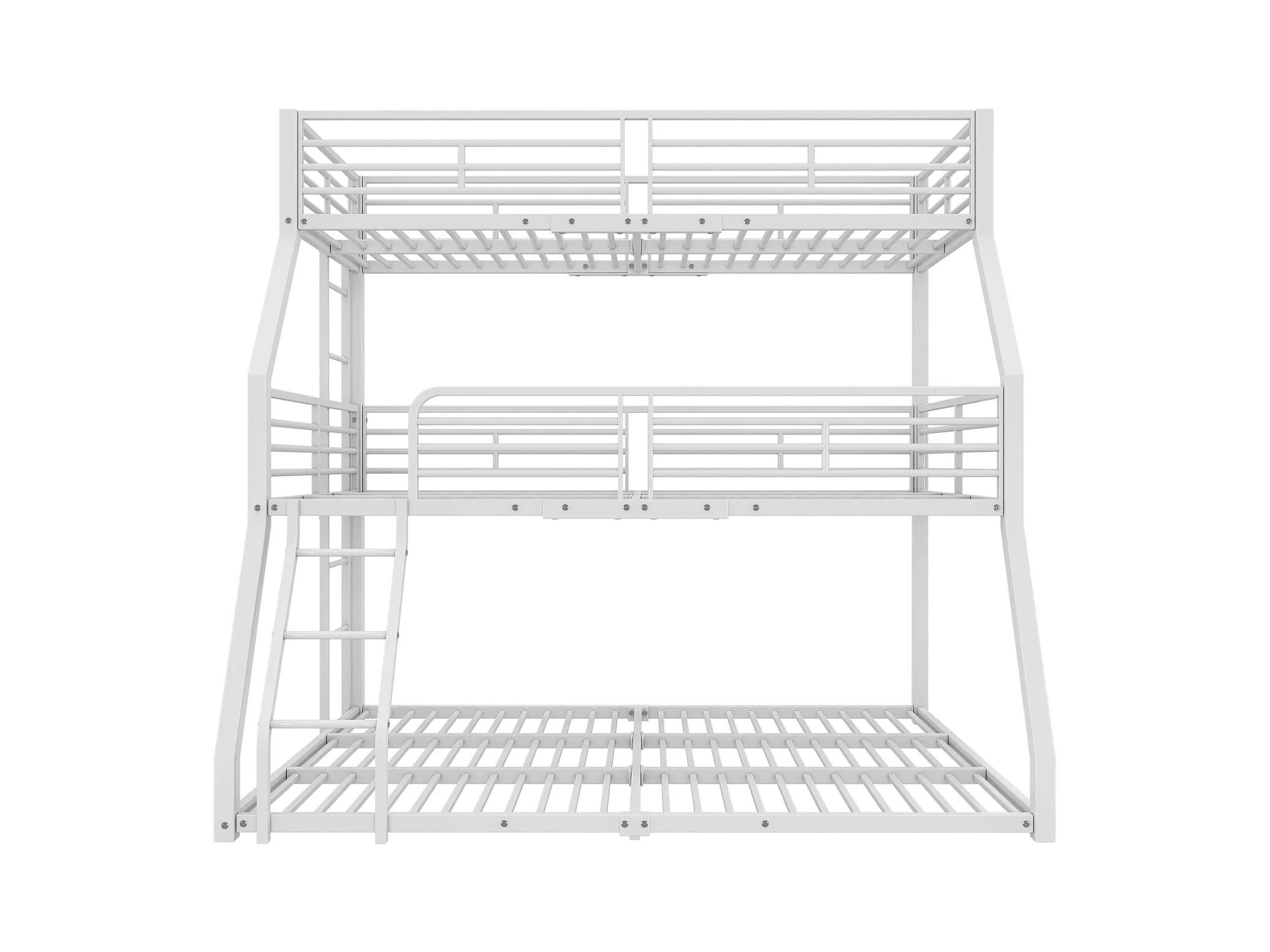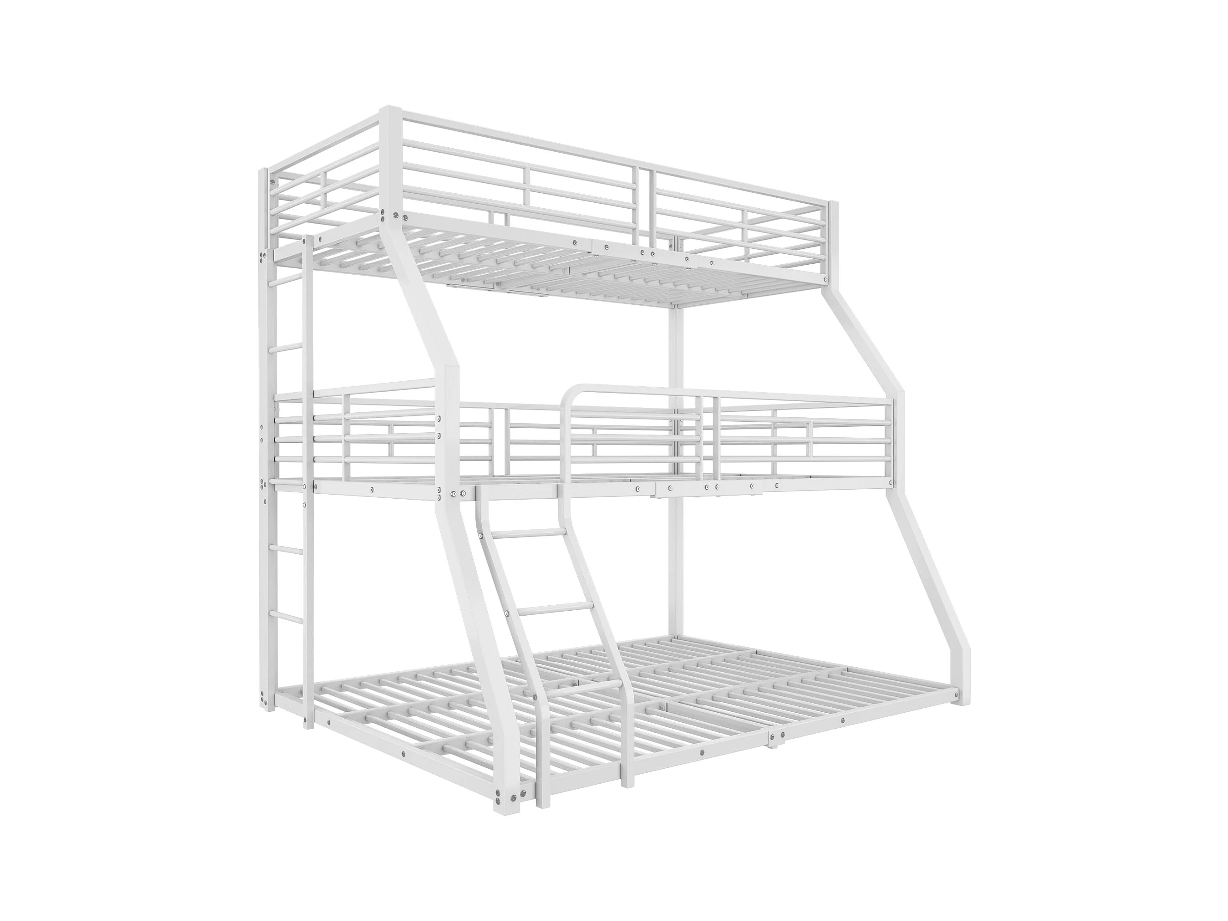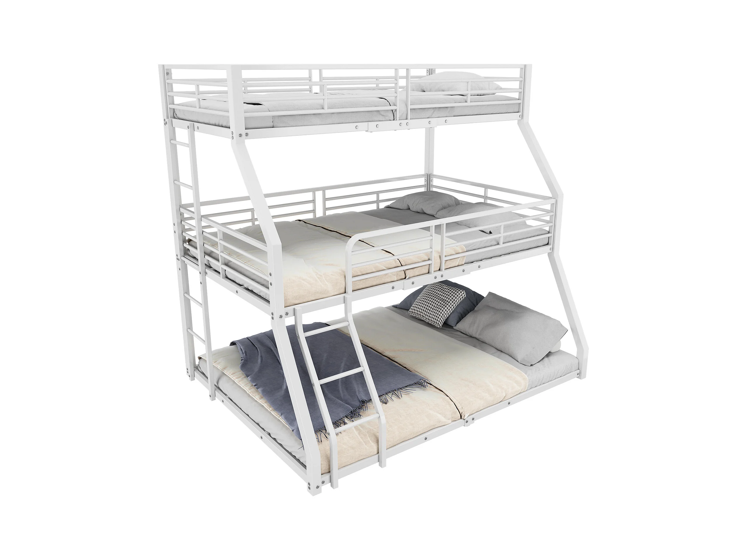 Lits superposés triples 90/120/140 x 200 cm avec 2 échelles - Métal - Sommier à lattes - Blanc (sans matelas)