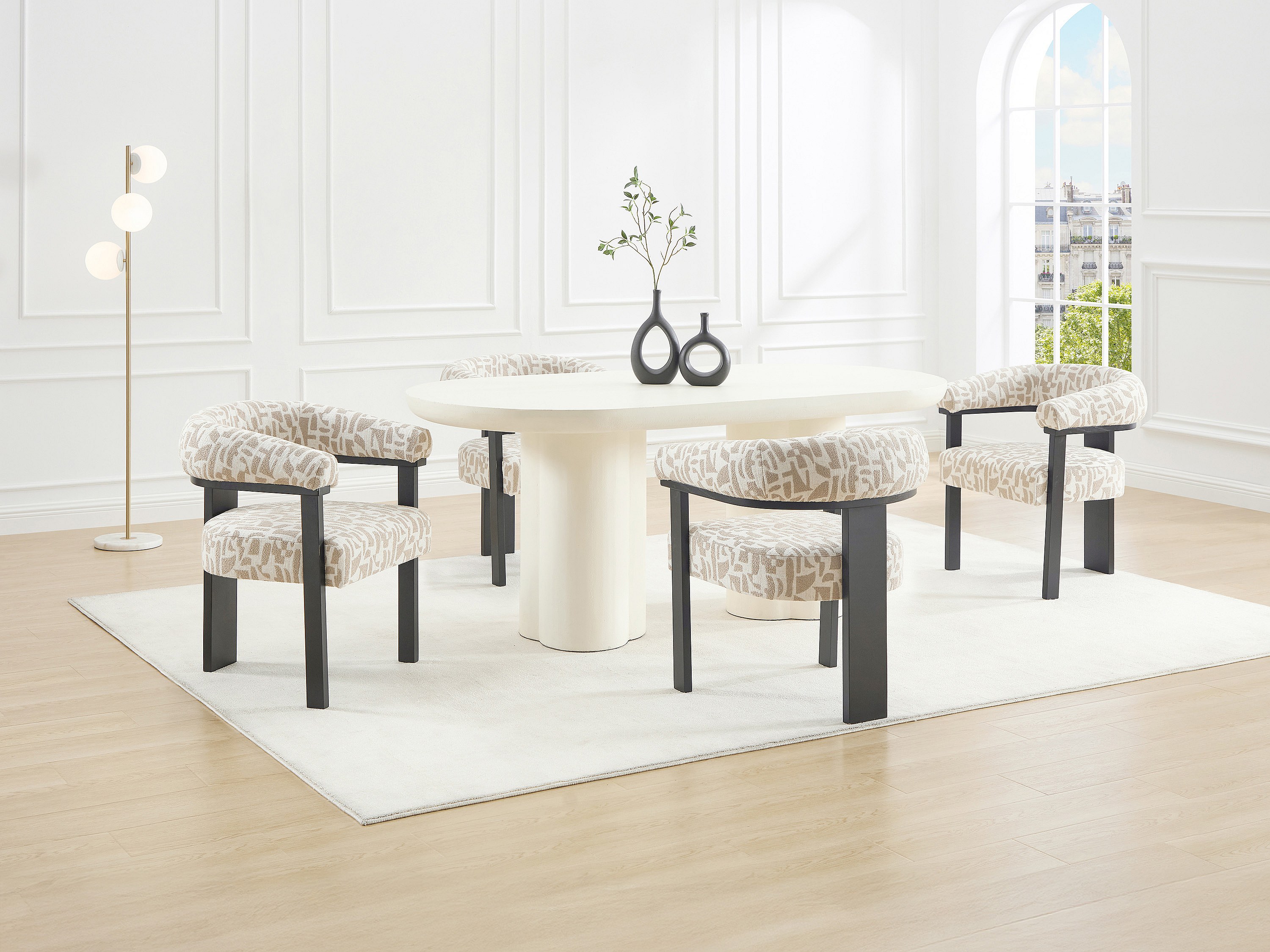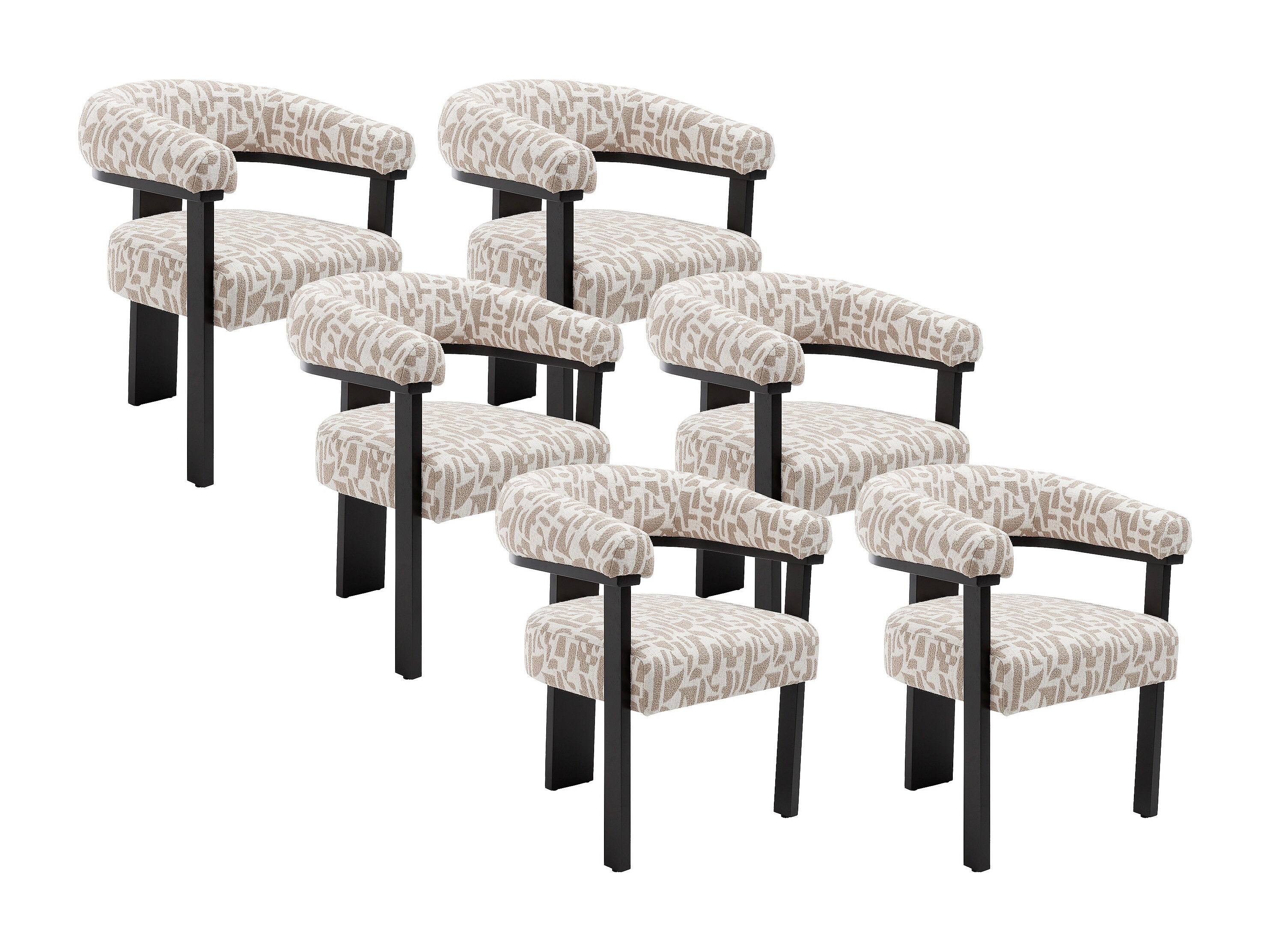 Lot de 6 chaises avec accoudoirs en tissu texturé bicolore et bois d'hévéa noir - Crème et taupe - LIVELIA de Pascal Morabito