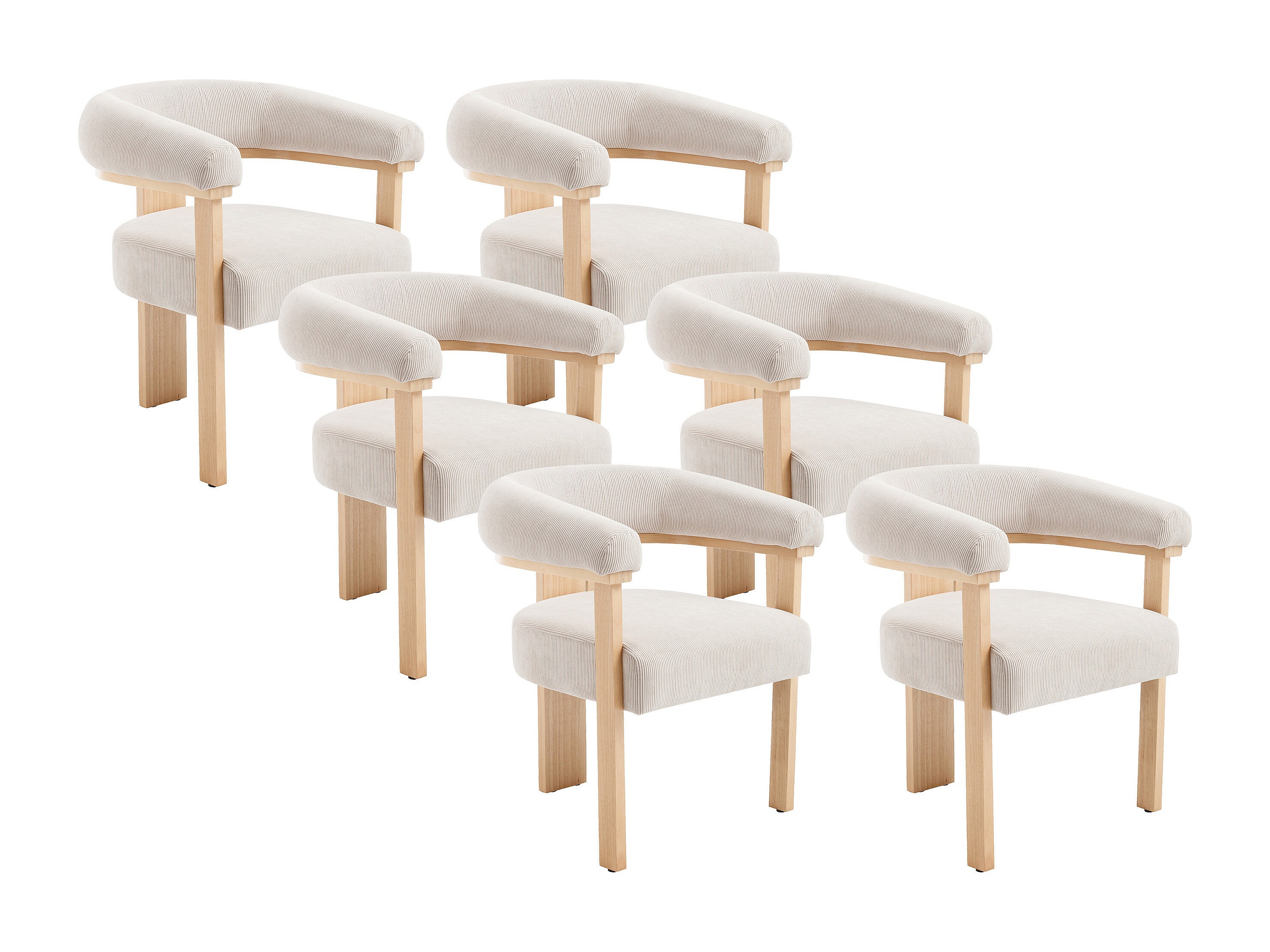 Lot de 6 chaises avec accoudoirs en velours côtelé et bois d'hévéa naturel - Beige - LIVELIA de Pascal Morabito