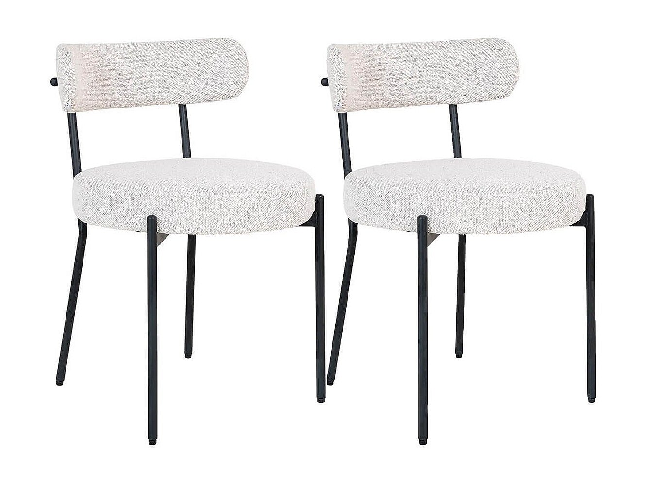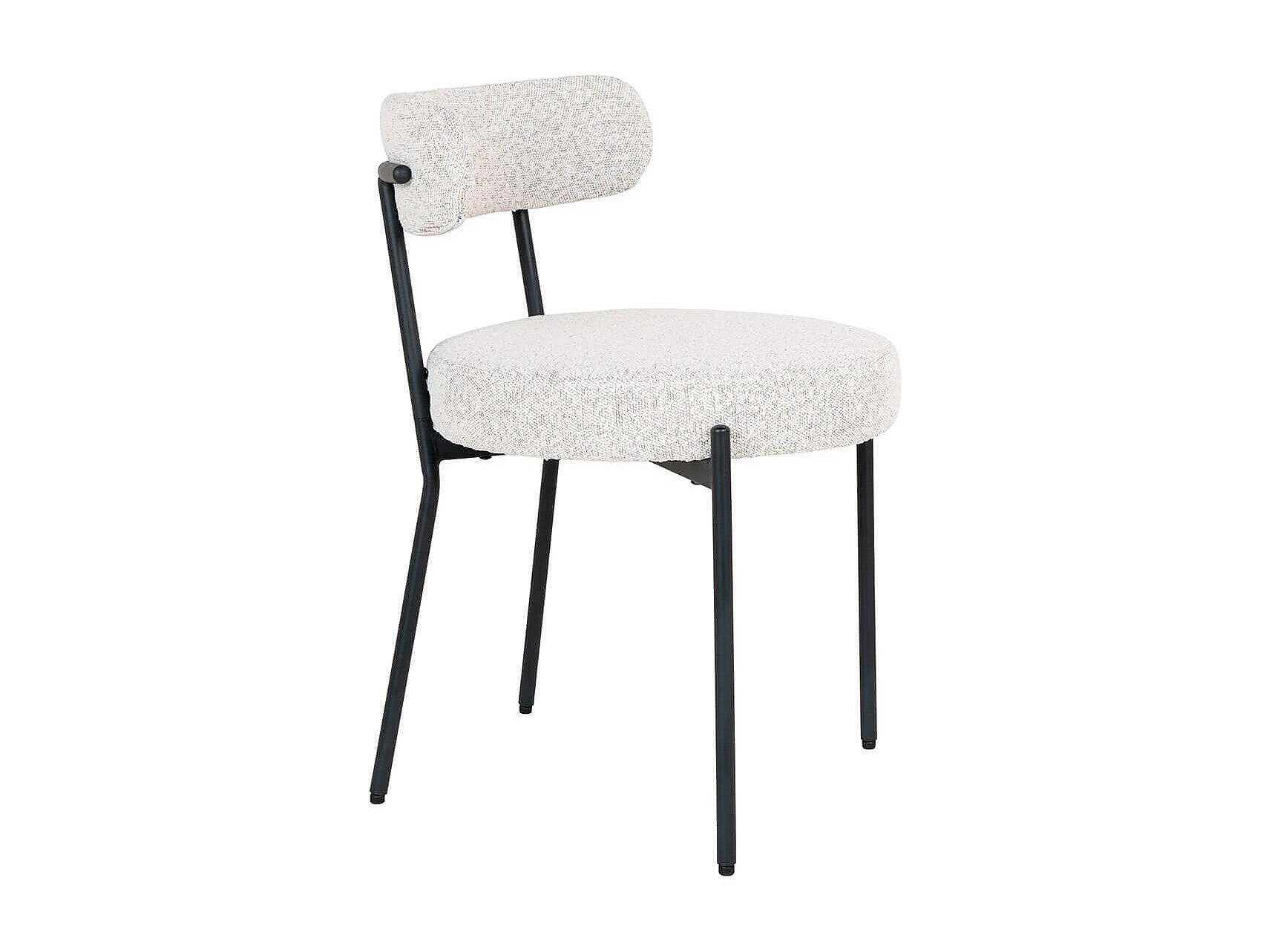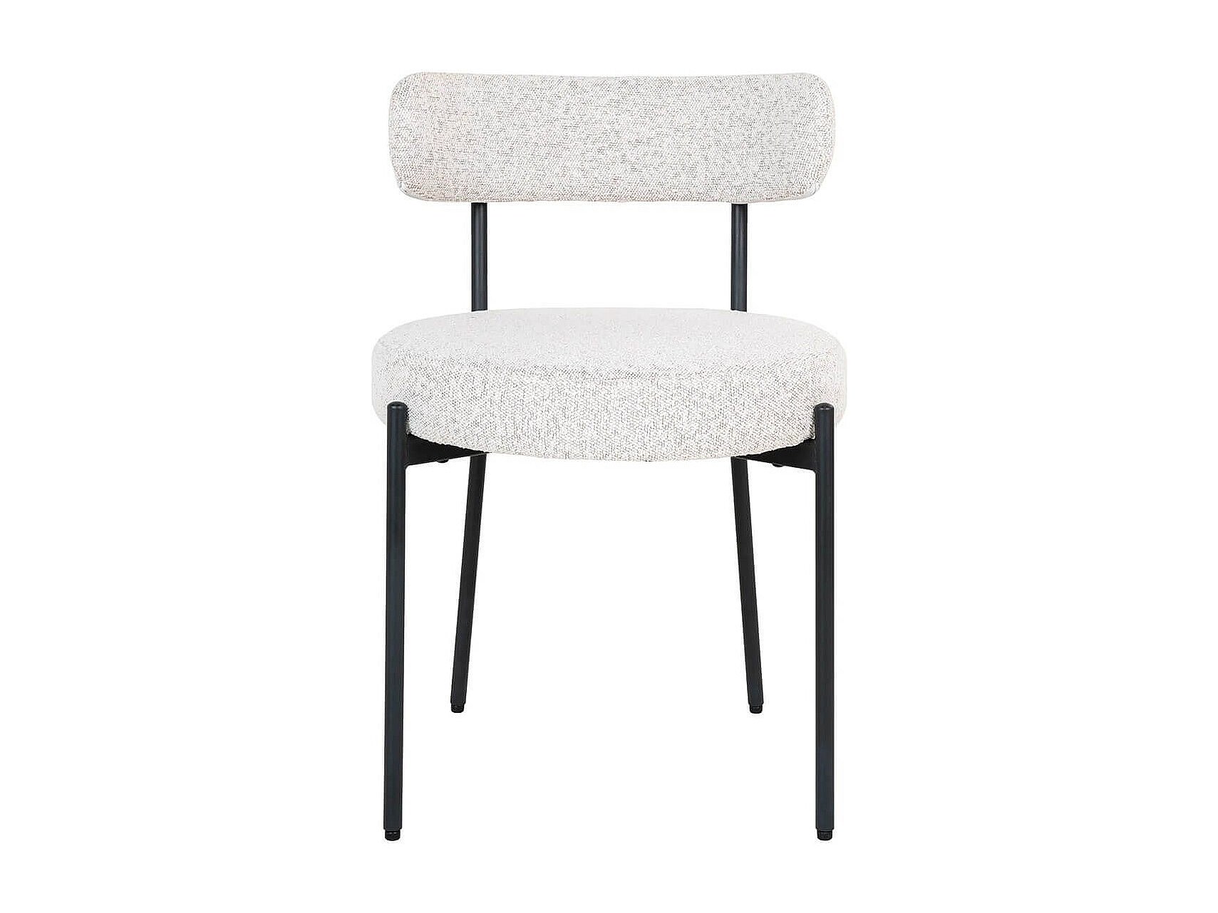 LOANA - Lot de 2 Chaises Tissu Bouclé Blanc Chiné Dossier et Pieds Métal Noir