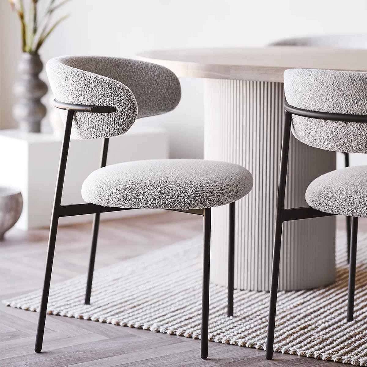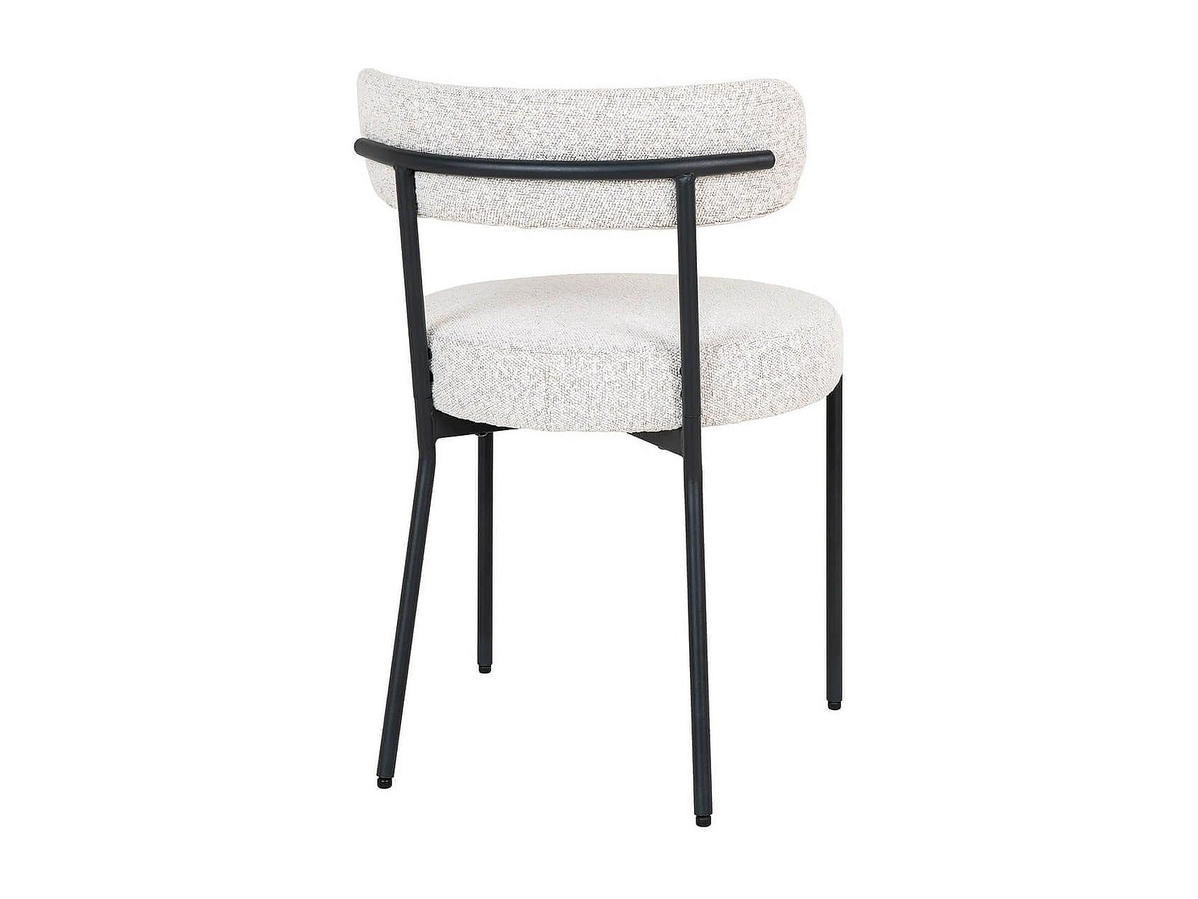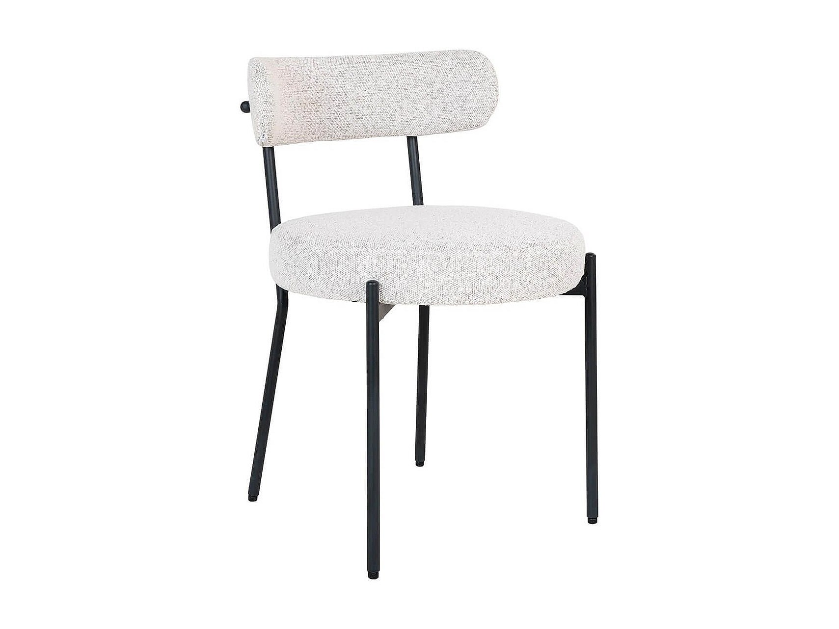 LOANA - Lot de 2 Chaises Tissu Bouclé Blanc Chiné Dossier et Pieds Métal Noir