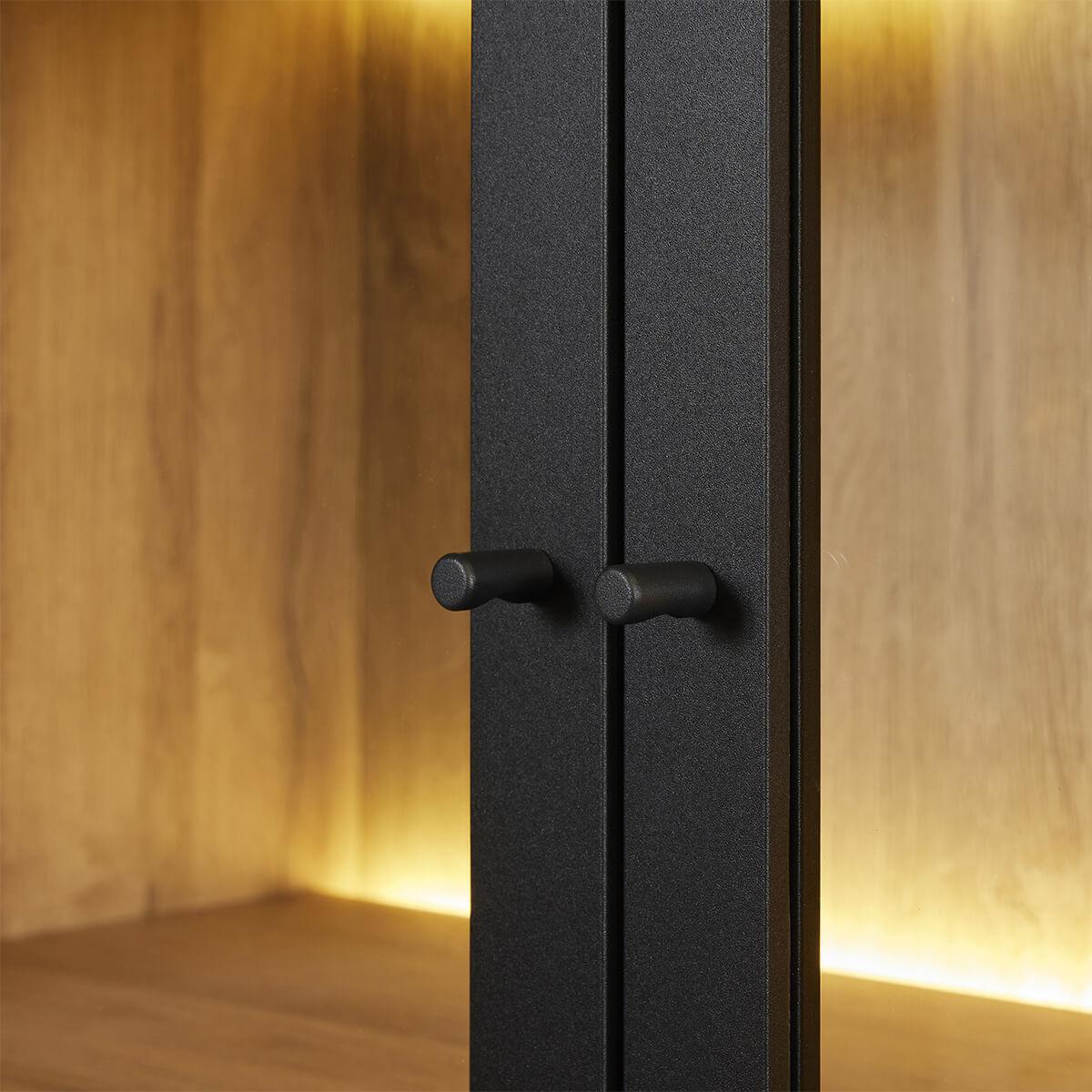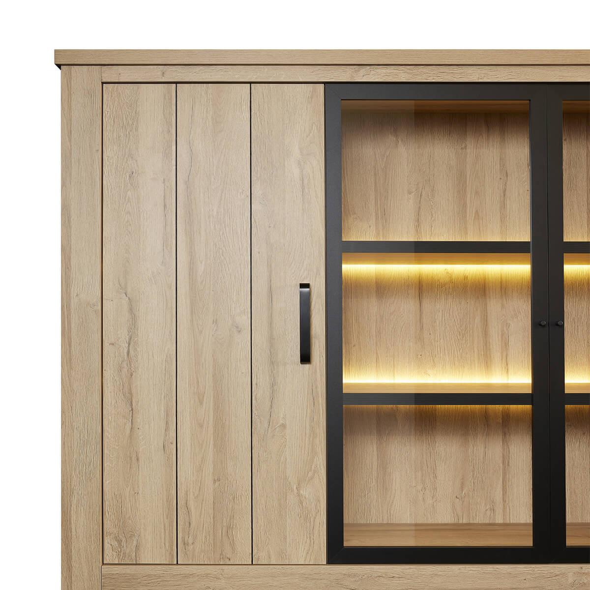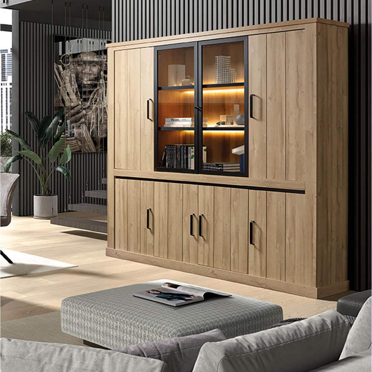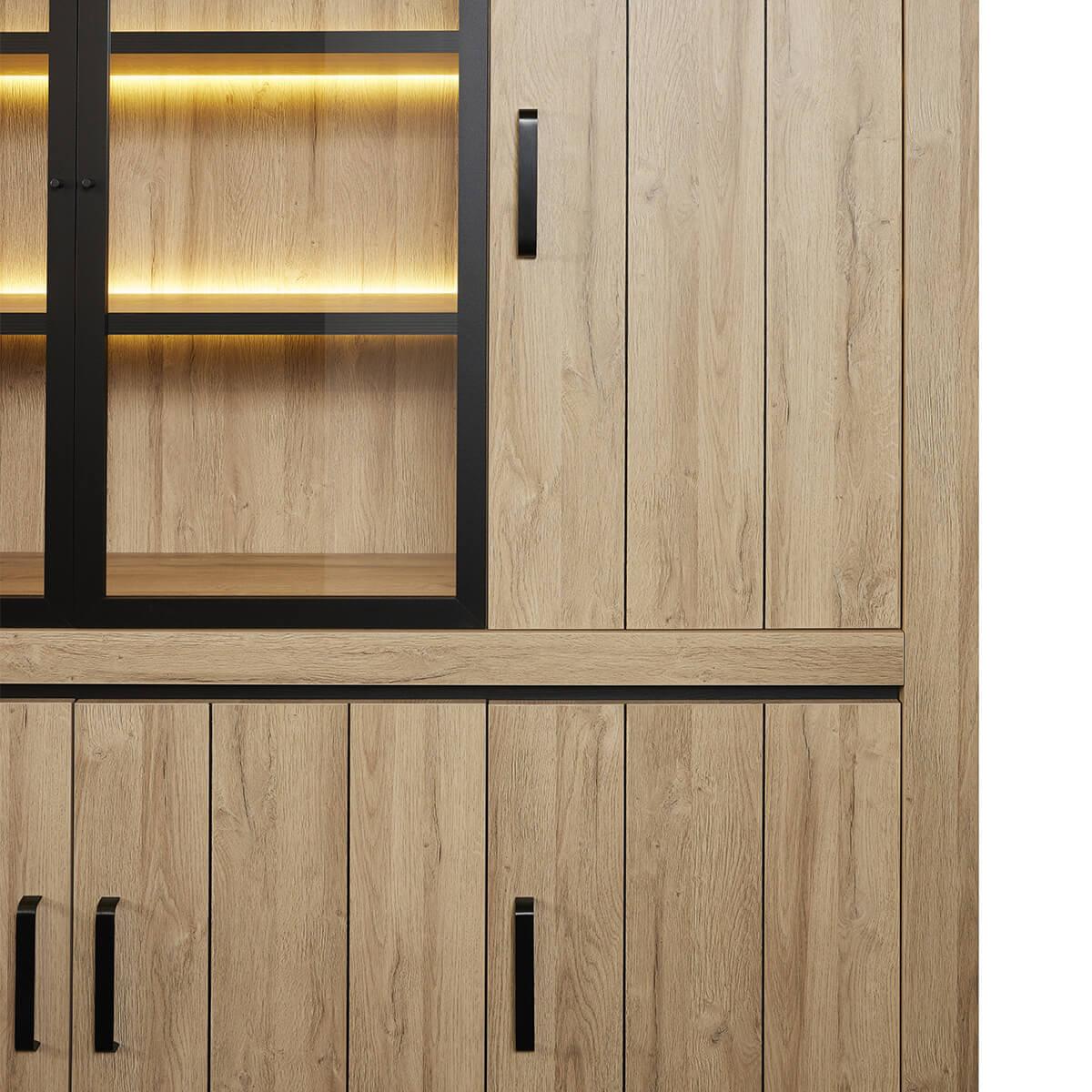 LORENZO - Bibliothèque 8 Portes avec Leds Aspect Bois Chêne Clair Finition Frank