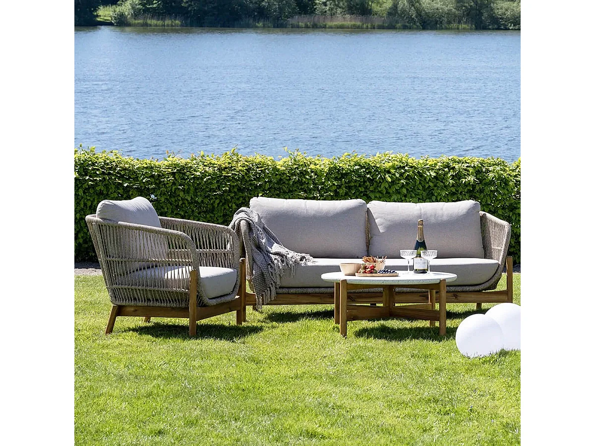 LORIENA - Table Basse Ronde Ø84,5cm en Acacia Plateau en Terrazzo