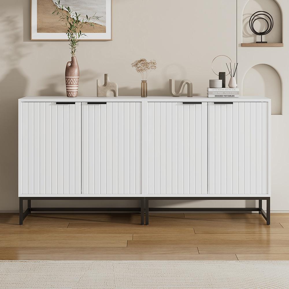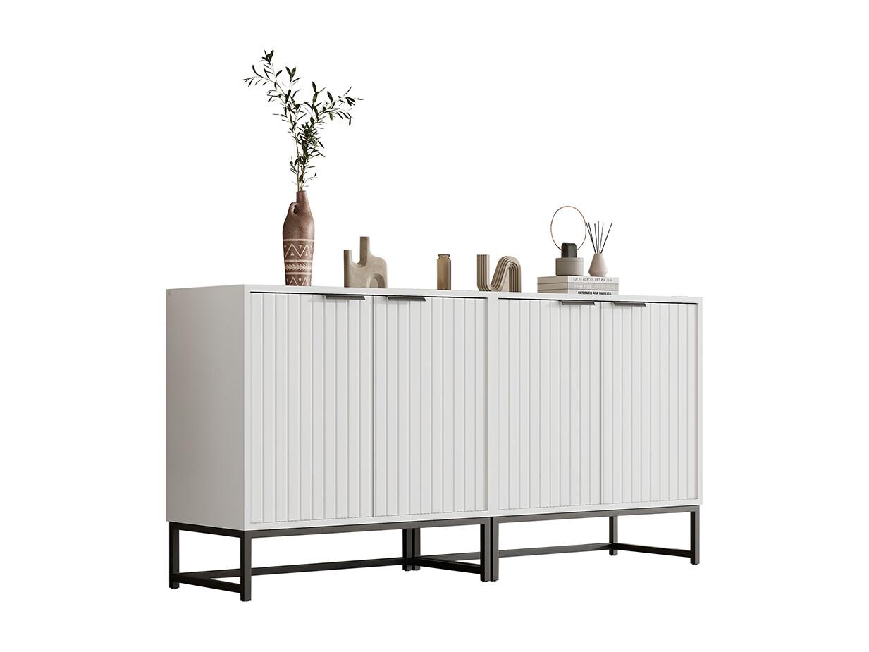 Lot 2 buffet 2 portes blanc commode moderne rangement salon couloir salle à manger poignées métalliques pieds cadre