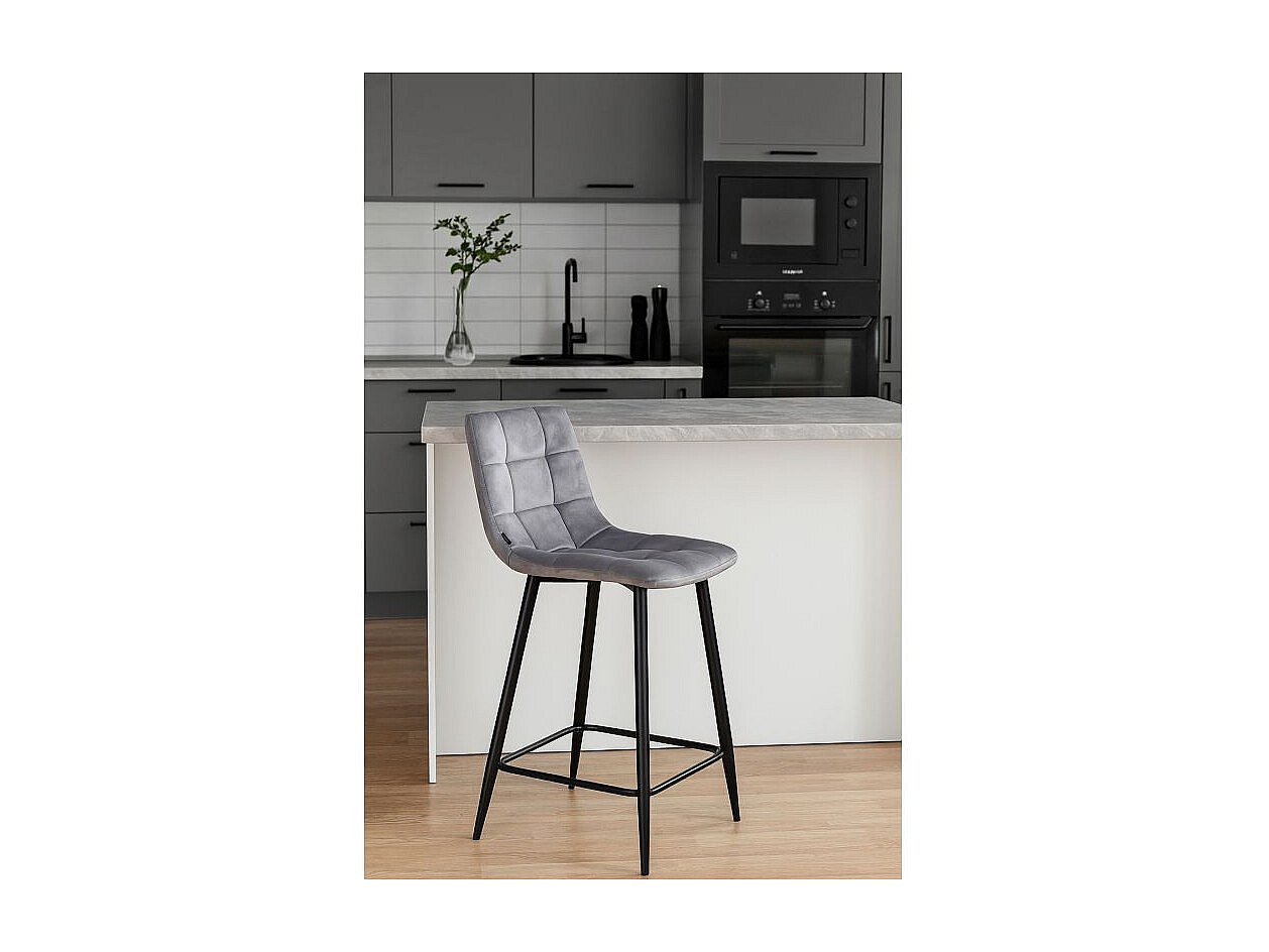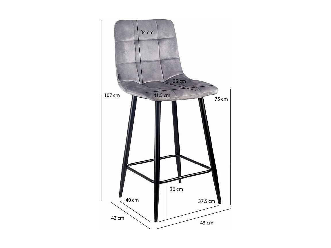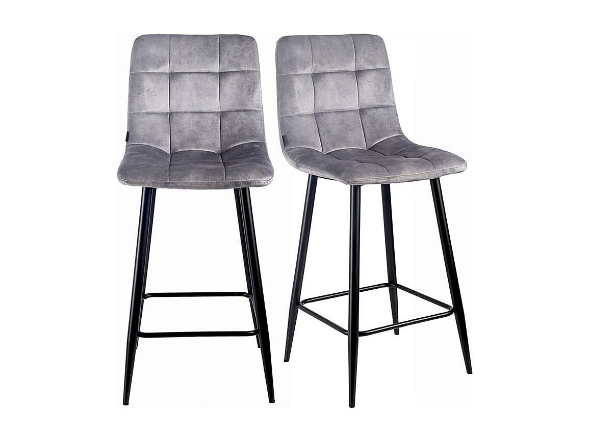 Lot 2 chaises de bar assise H.75 cm en velours gris clair - NAMI 2