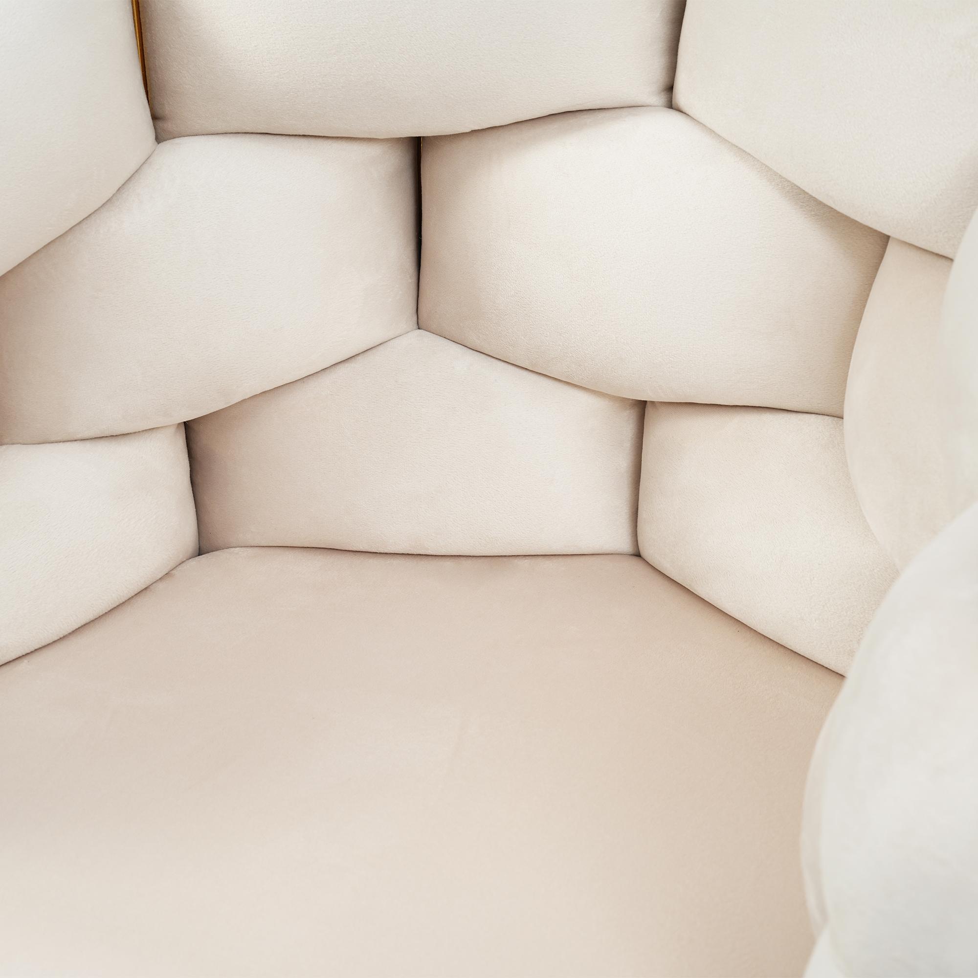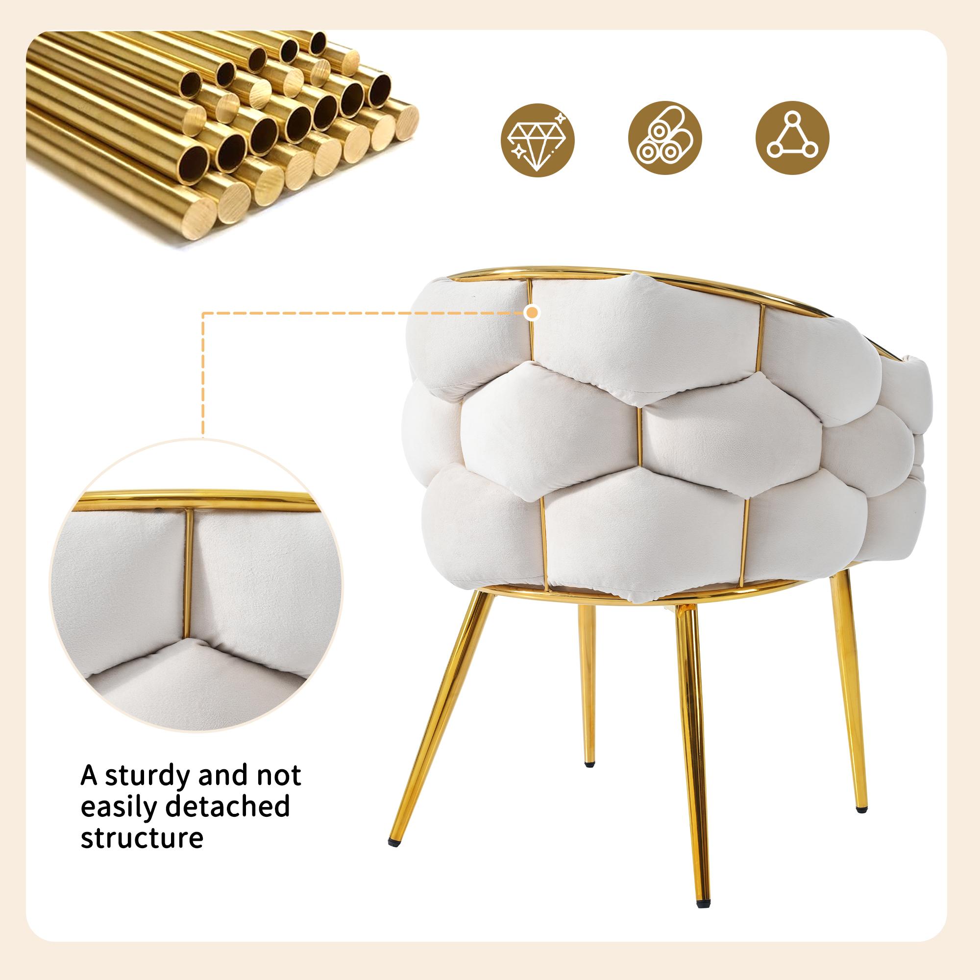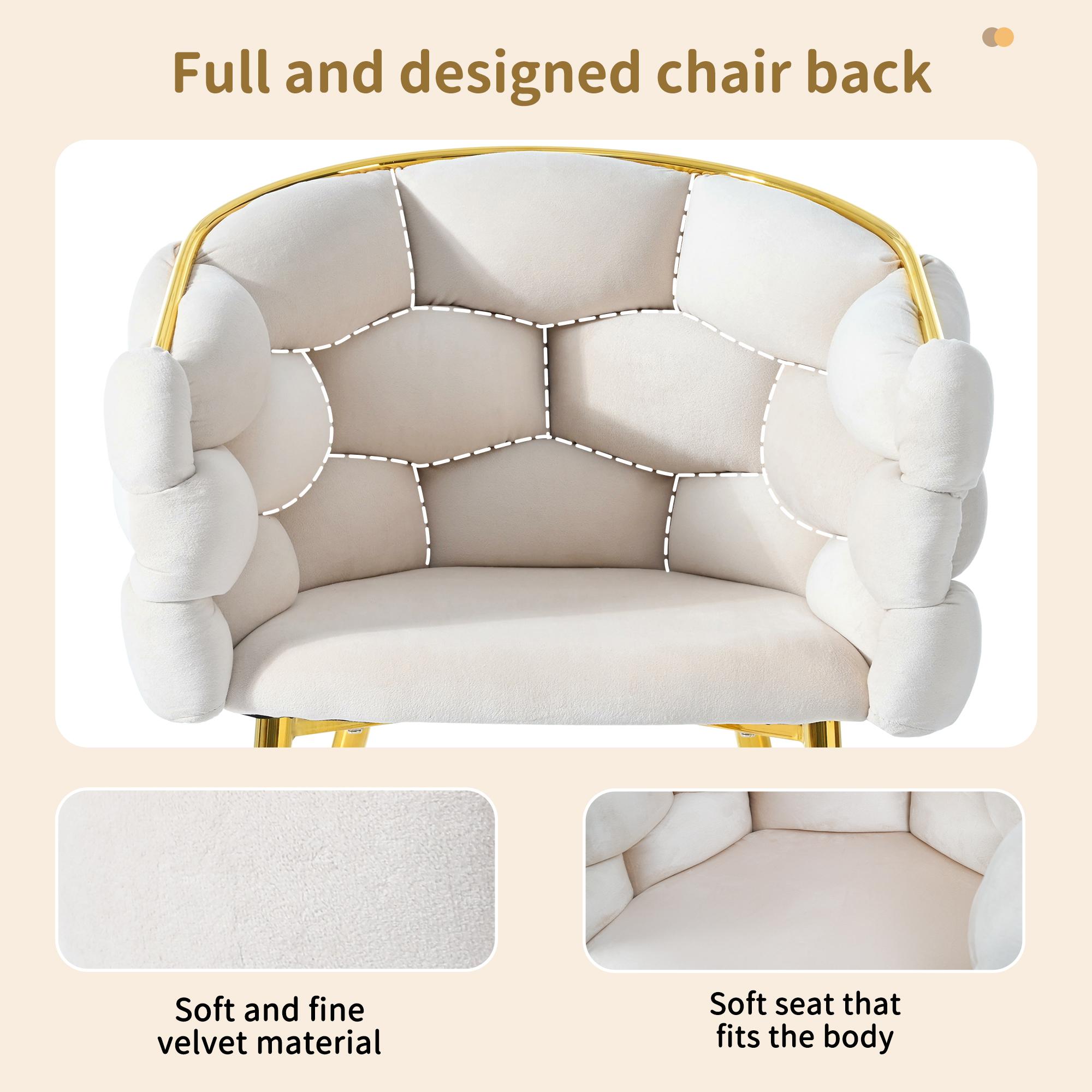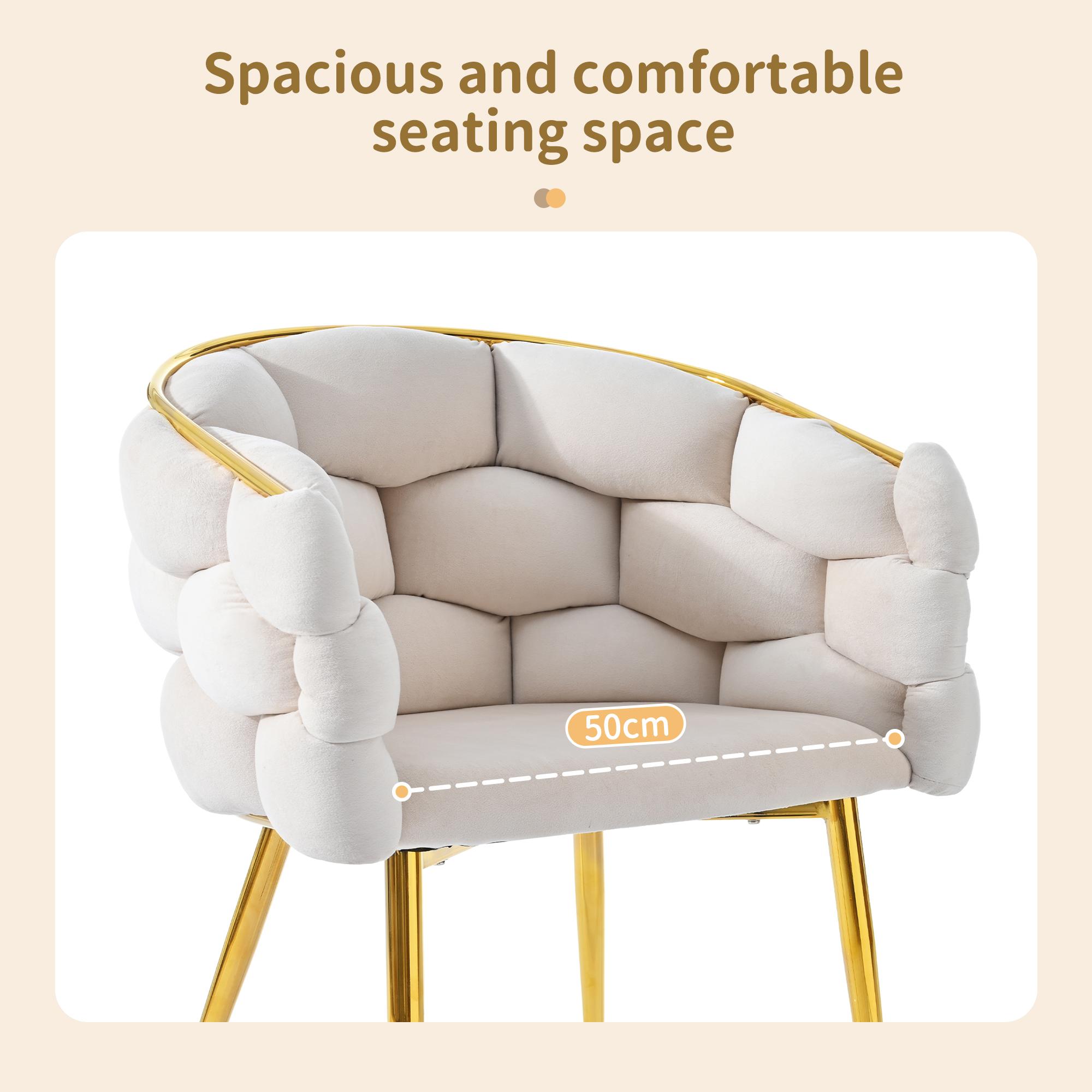Lot 2 chaises modernes en velours, pieds métal doré, beige, Bubble ergonomiques pour salon