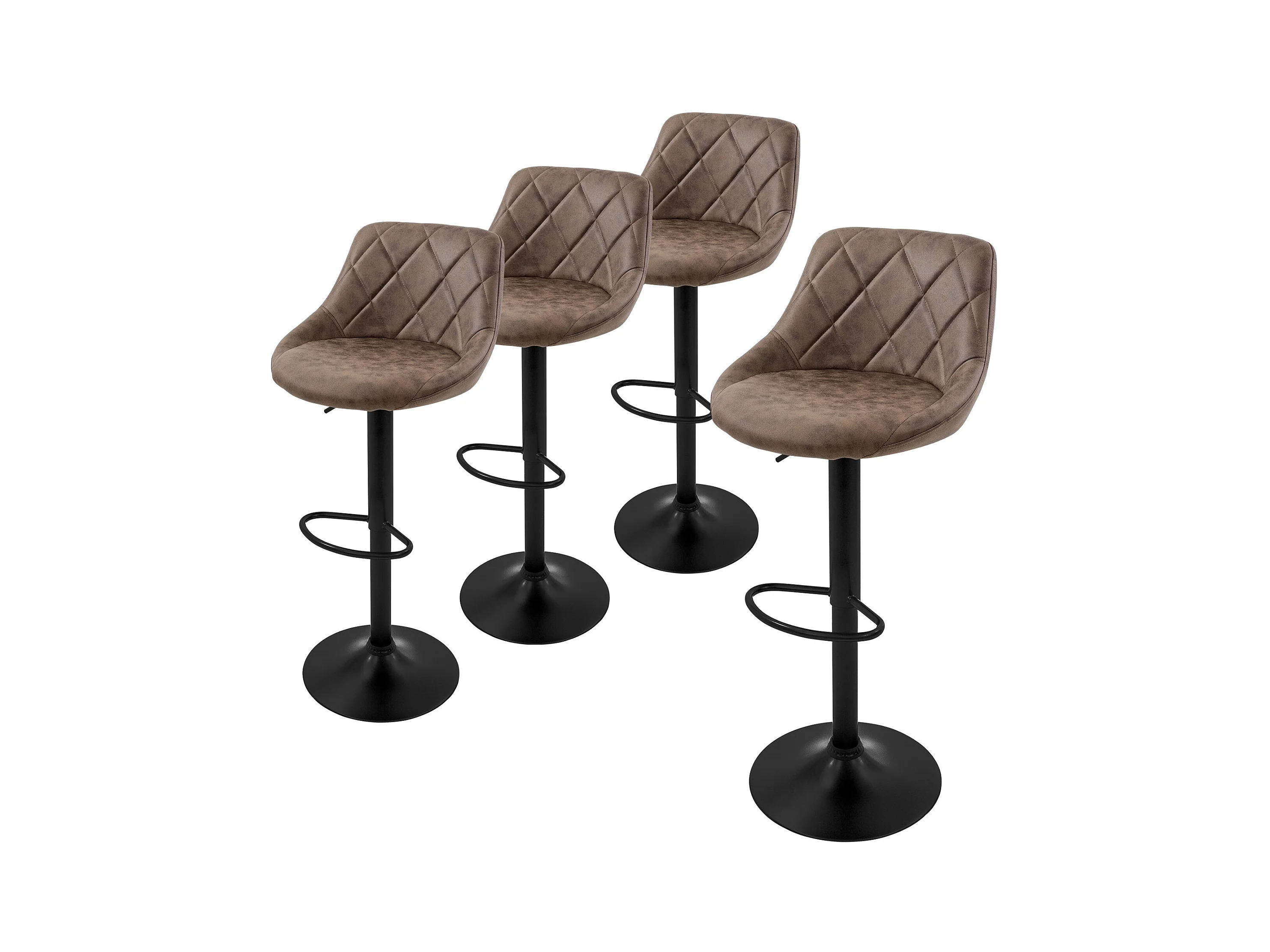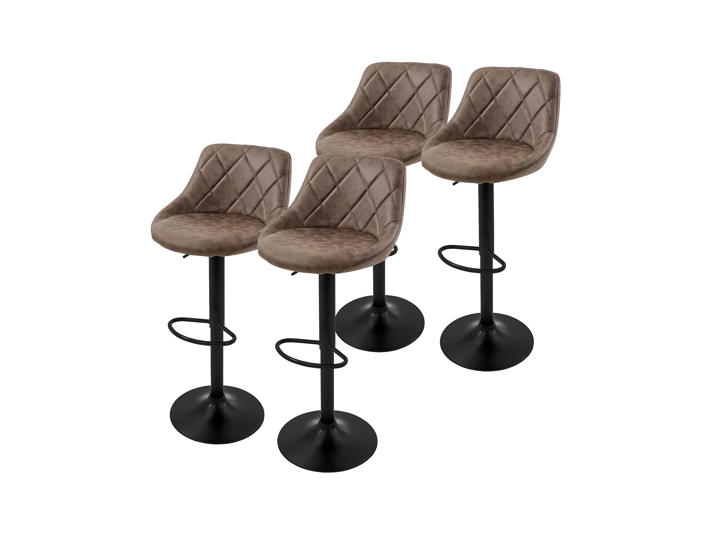 Lot 4 tabourets de bar rembourrées en simili marron hauteur réglable 62-82 cm