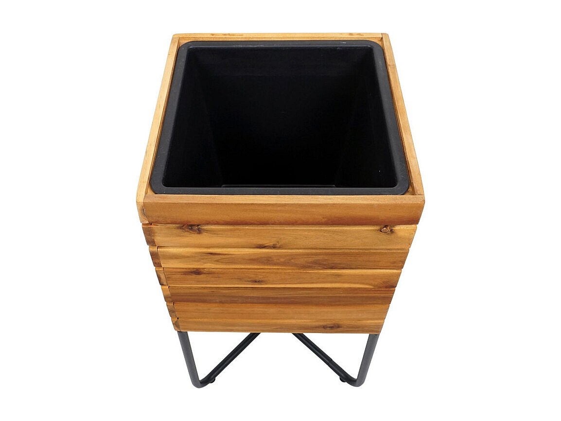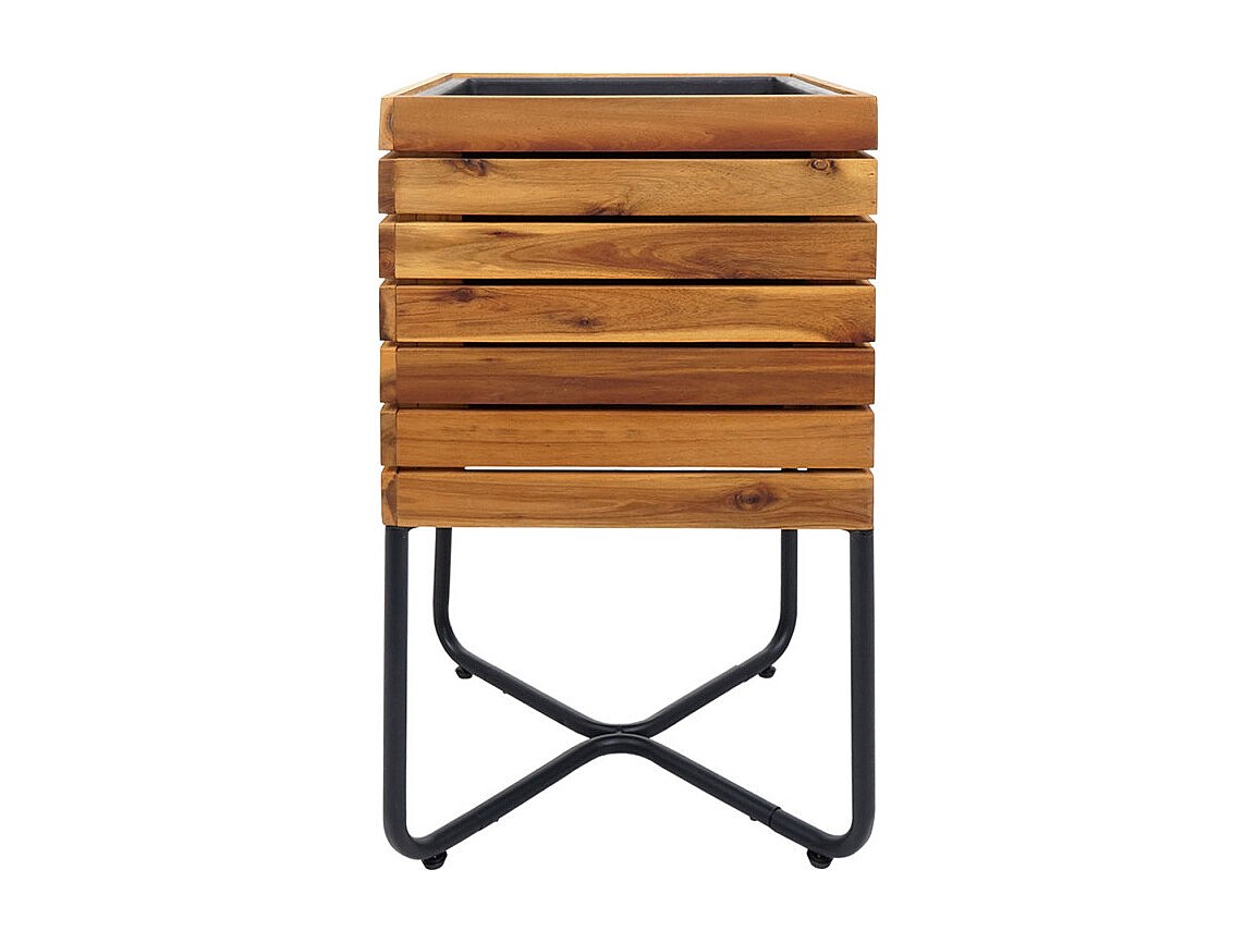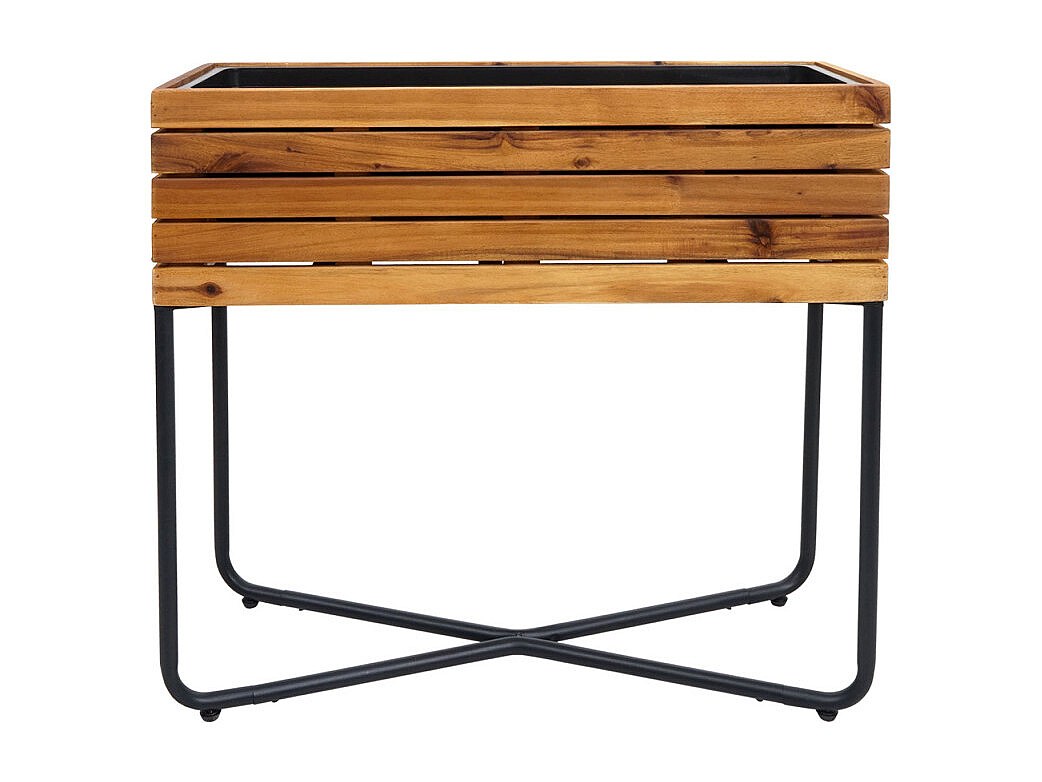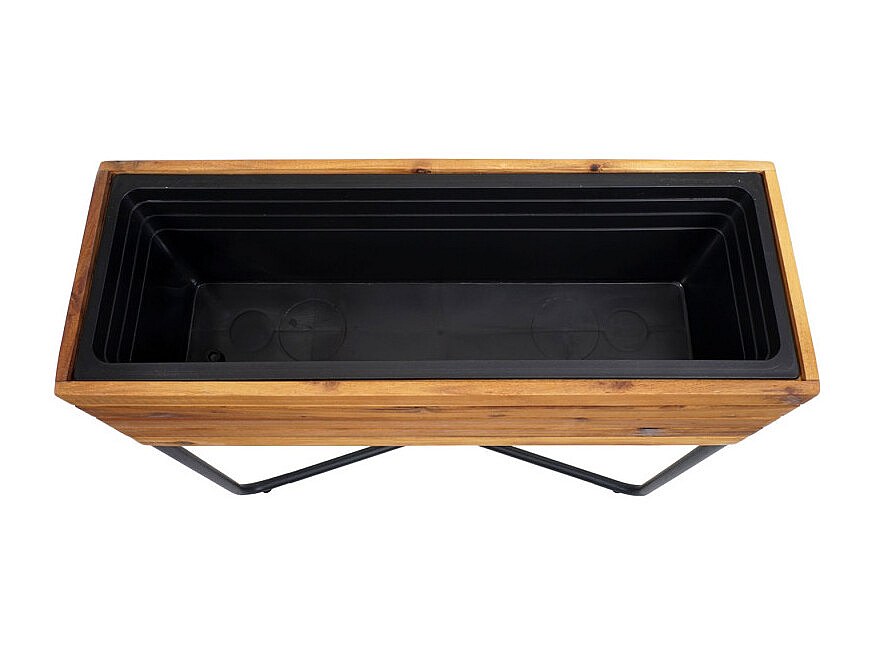 Lot de 2 bacs à fleurs HWC-L25 - bac à fleurs - rectangulaire carré Outdoor acier acacia bois certifié MVG - brun