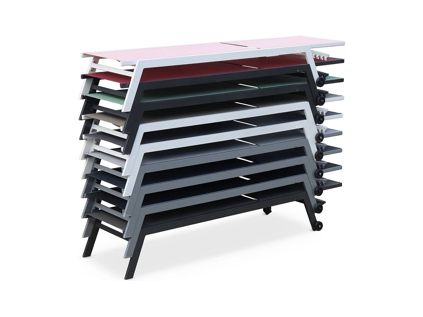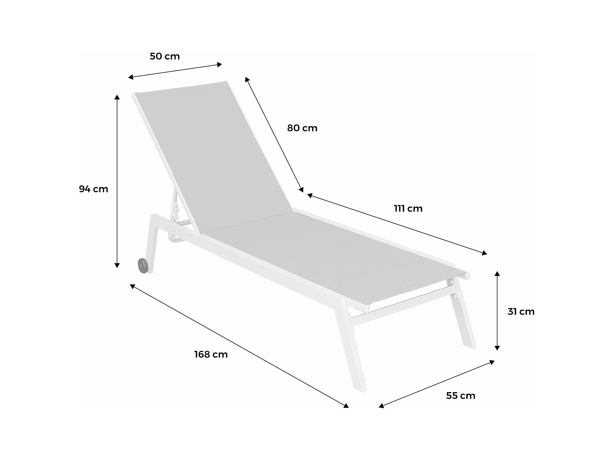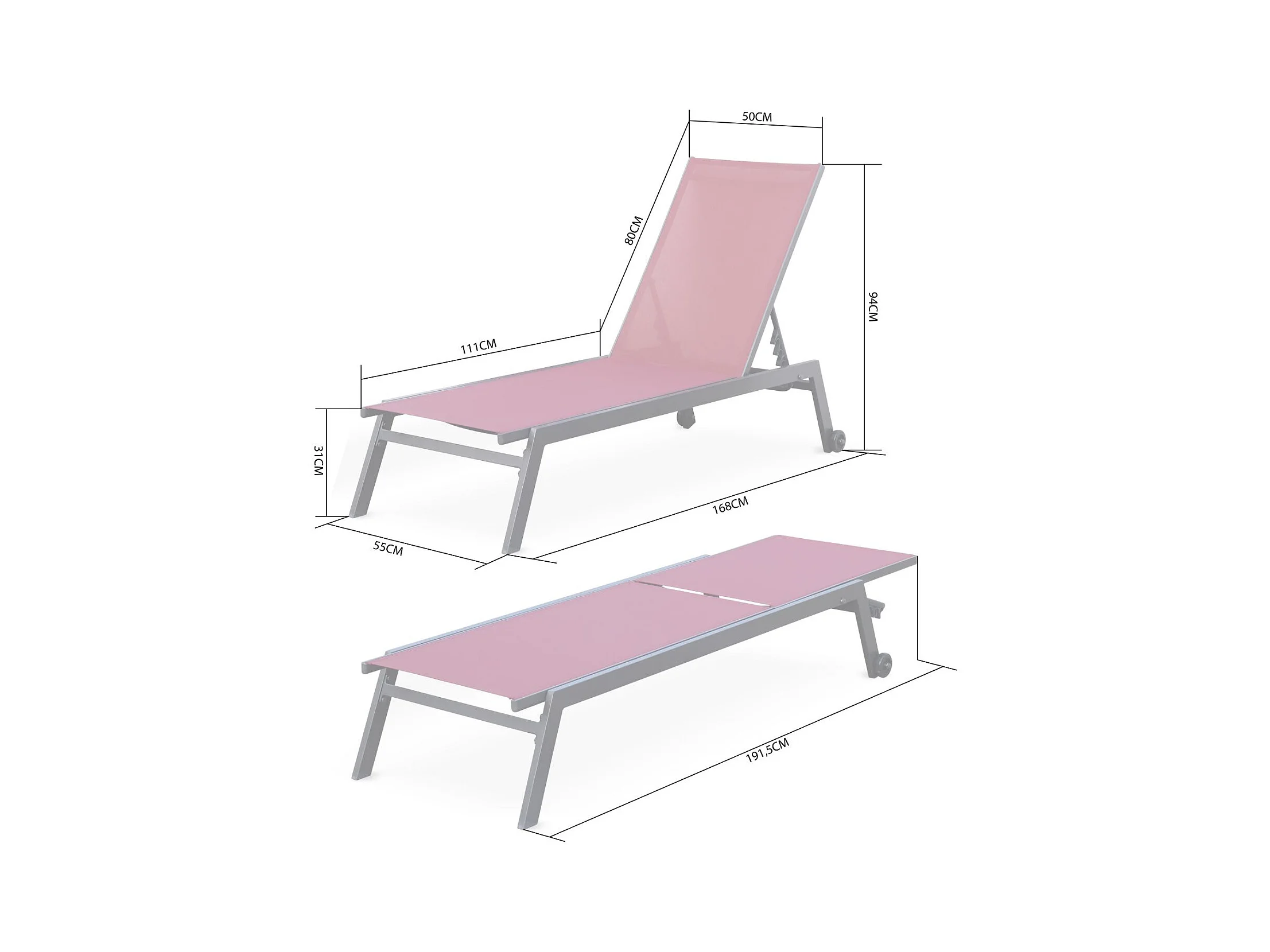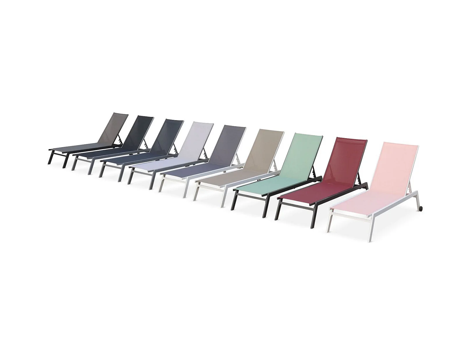 Lot de 2 bains de soleil ELSA en aluminium blanc et textilène gris. transats multi positions avec roulettes