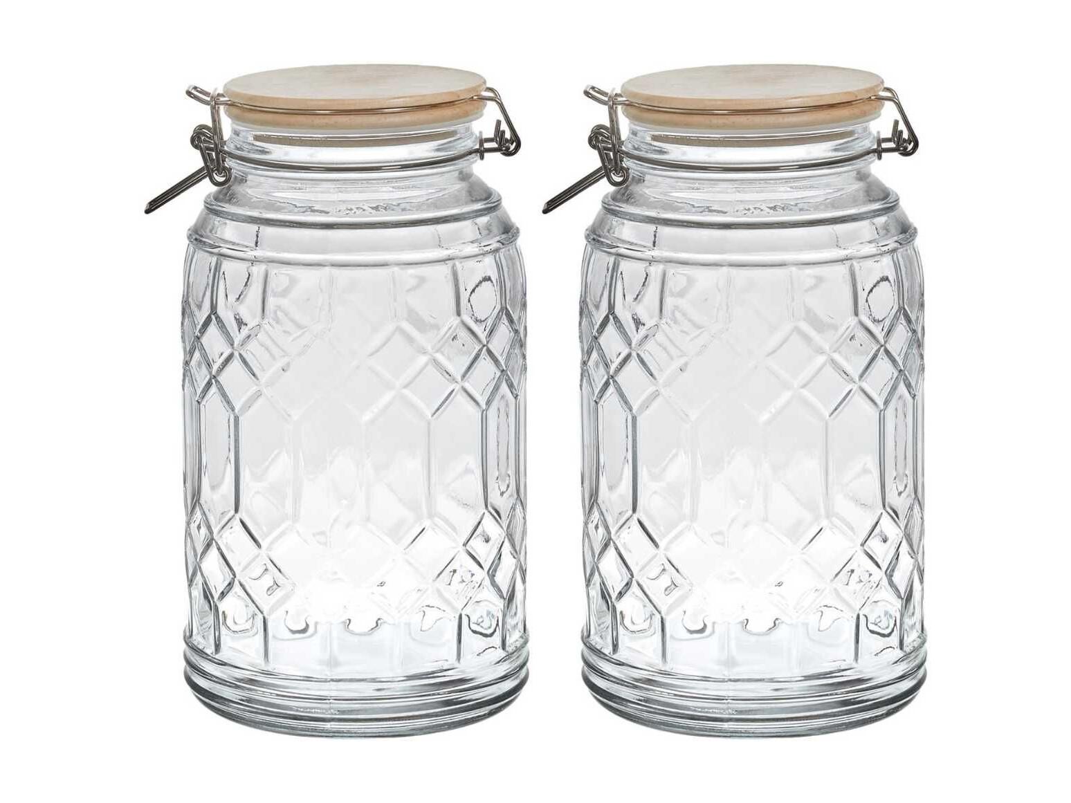 Lot de 2 Bocaux de Conservation 2,3L en Verre Couvercle Bambou