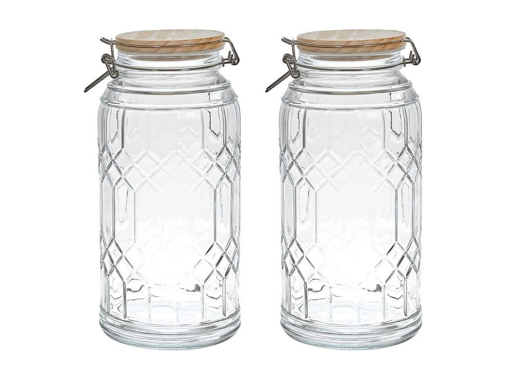 Lot de 2 Bocaux de Conservation 2,7L en Verre Couvercle Bambou
