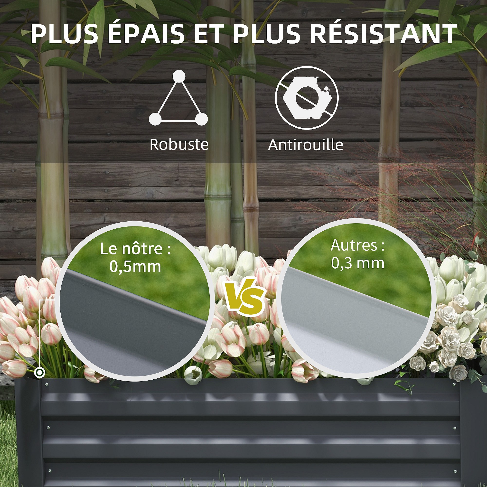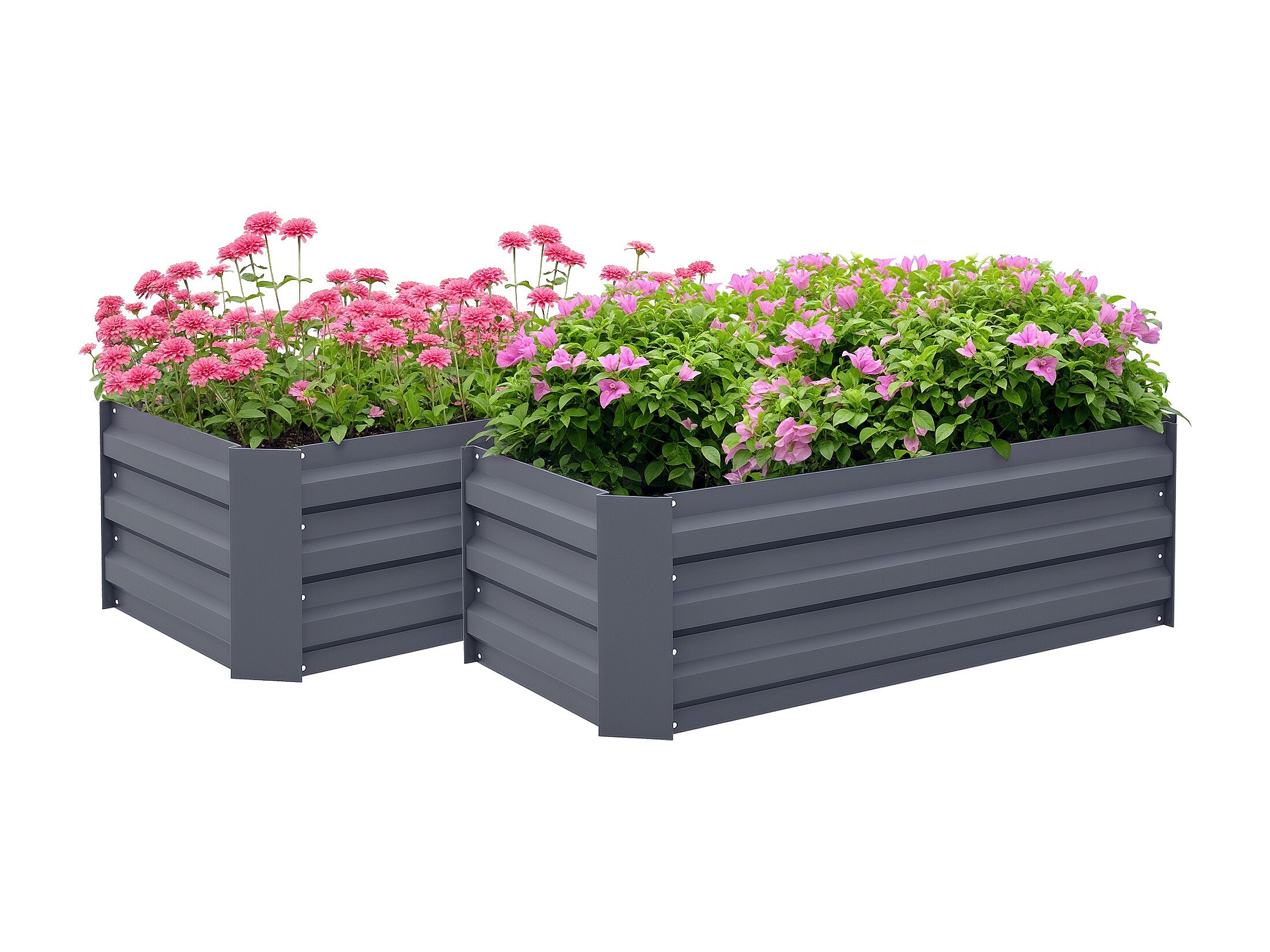 Lot de 2 carrés potager de jardin dim. 100L x 50l x 30H cm tôle d'acier ondulée gris