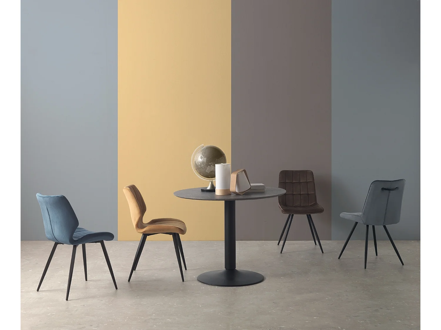 Lot de 2 chaises rembourrées moutarde avec pieds métalliques noirs