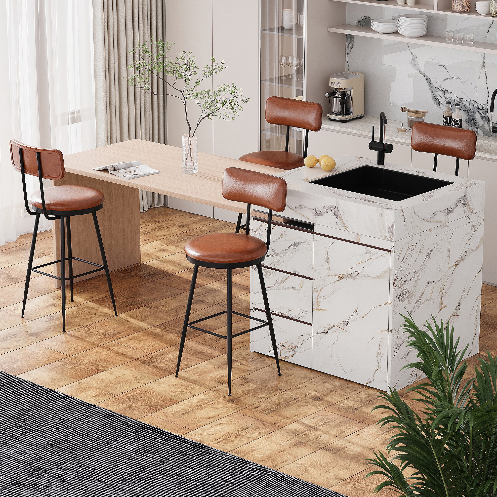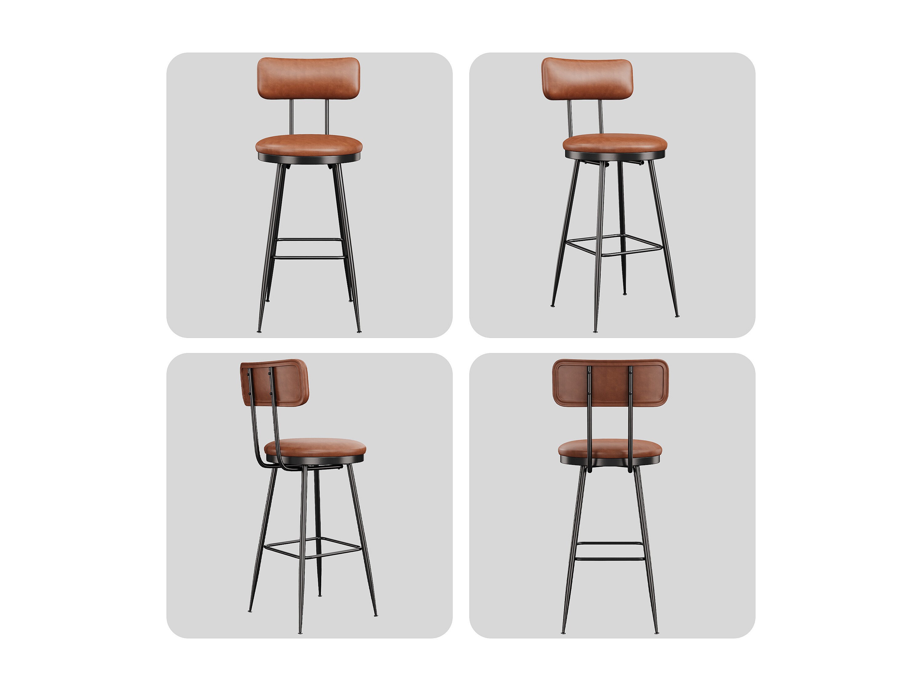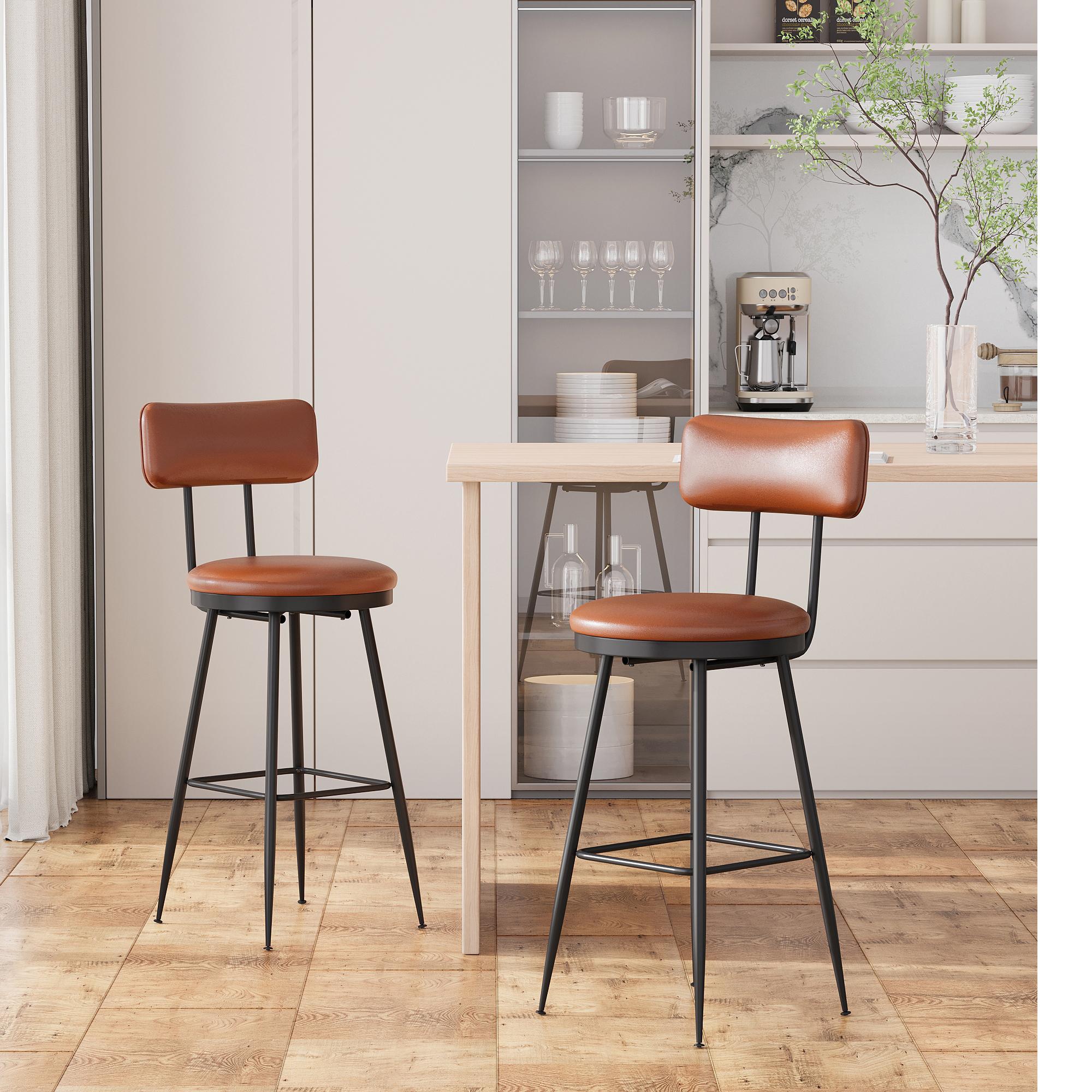 Lot de 2 chaises de bar en similicuir marron, design moderne et minimaliste, cadre métallique robuste, confortables avec dossier et faciles à nettoyer