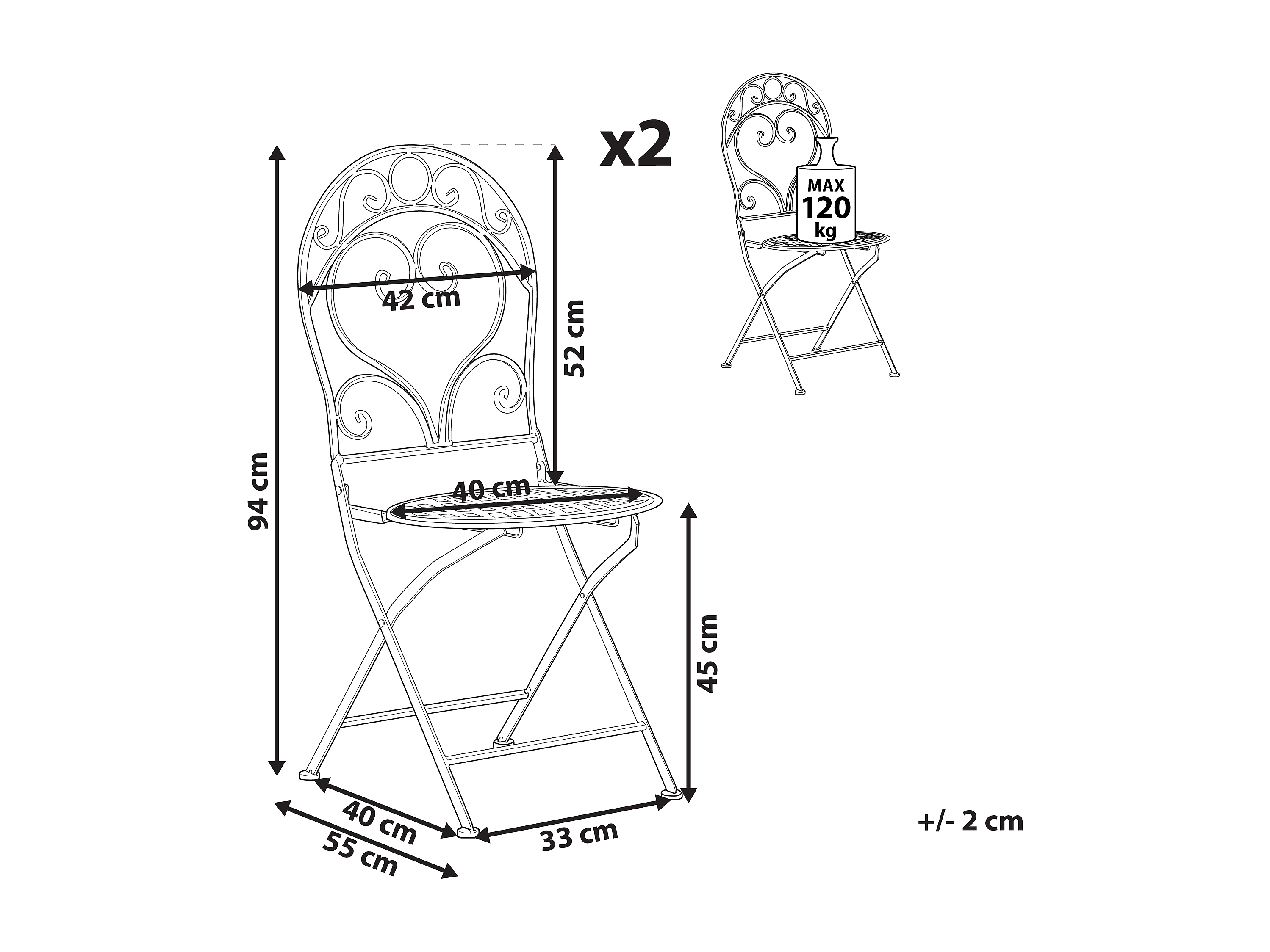 Lot de 2 chaises de jardin ALBINIA Métal Rouge Bordeaux