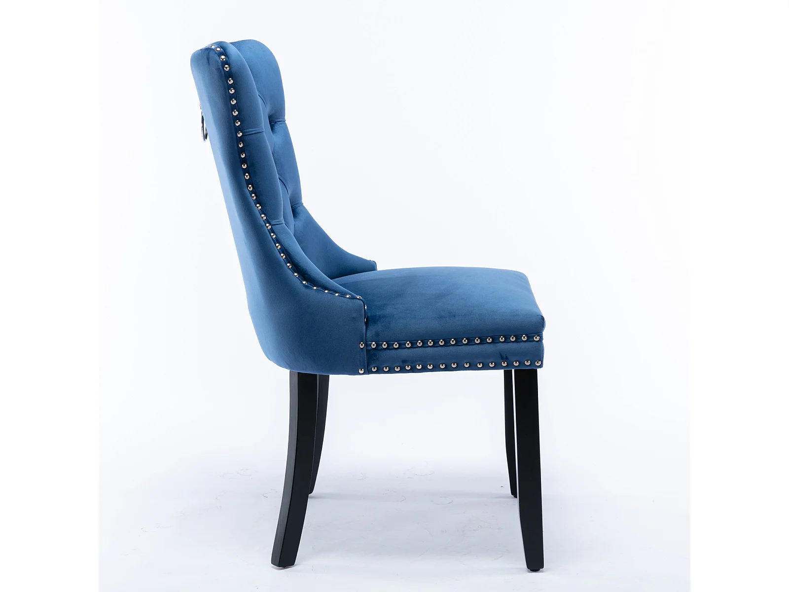 Lot de 2 chaises de salle à manger - Chaises avec dossier rembourré, pieds en bois et garniture cloutée - velours bleu