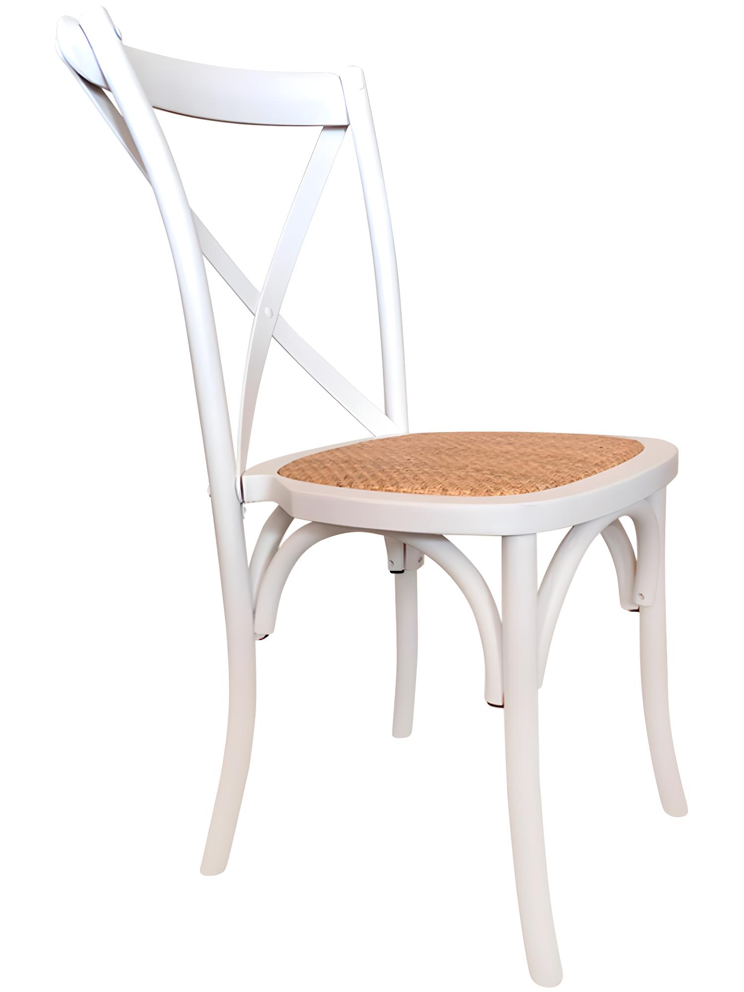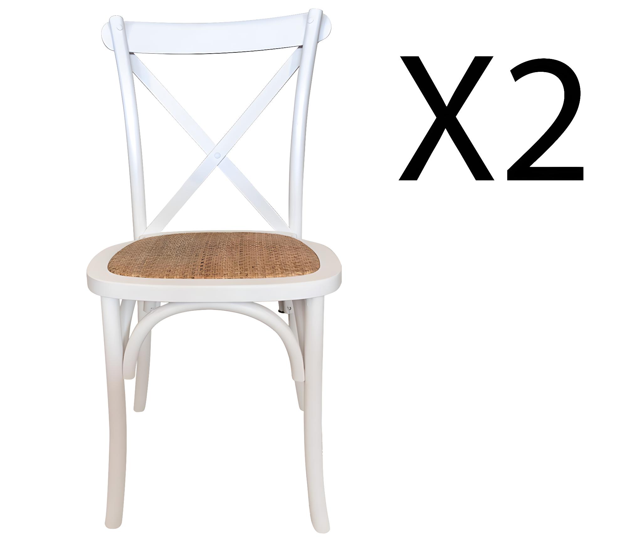 Lot de 2 chaises de salle à manger en bois blanc et rotin naturel - longueur 48 x profondeur 52 x hauteur 89 cm