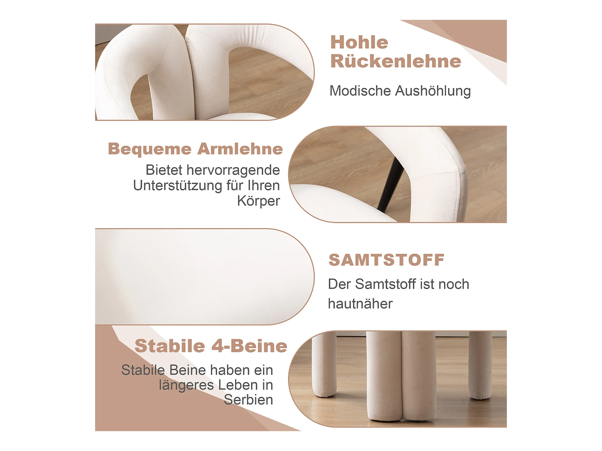 Lot de 2 Chaises de Salle à Manger en Velours Moderne, Chaises Décoratives avec Rembourrage, Fauteuils de Cuisine et Salon