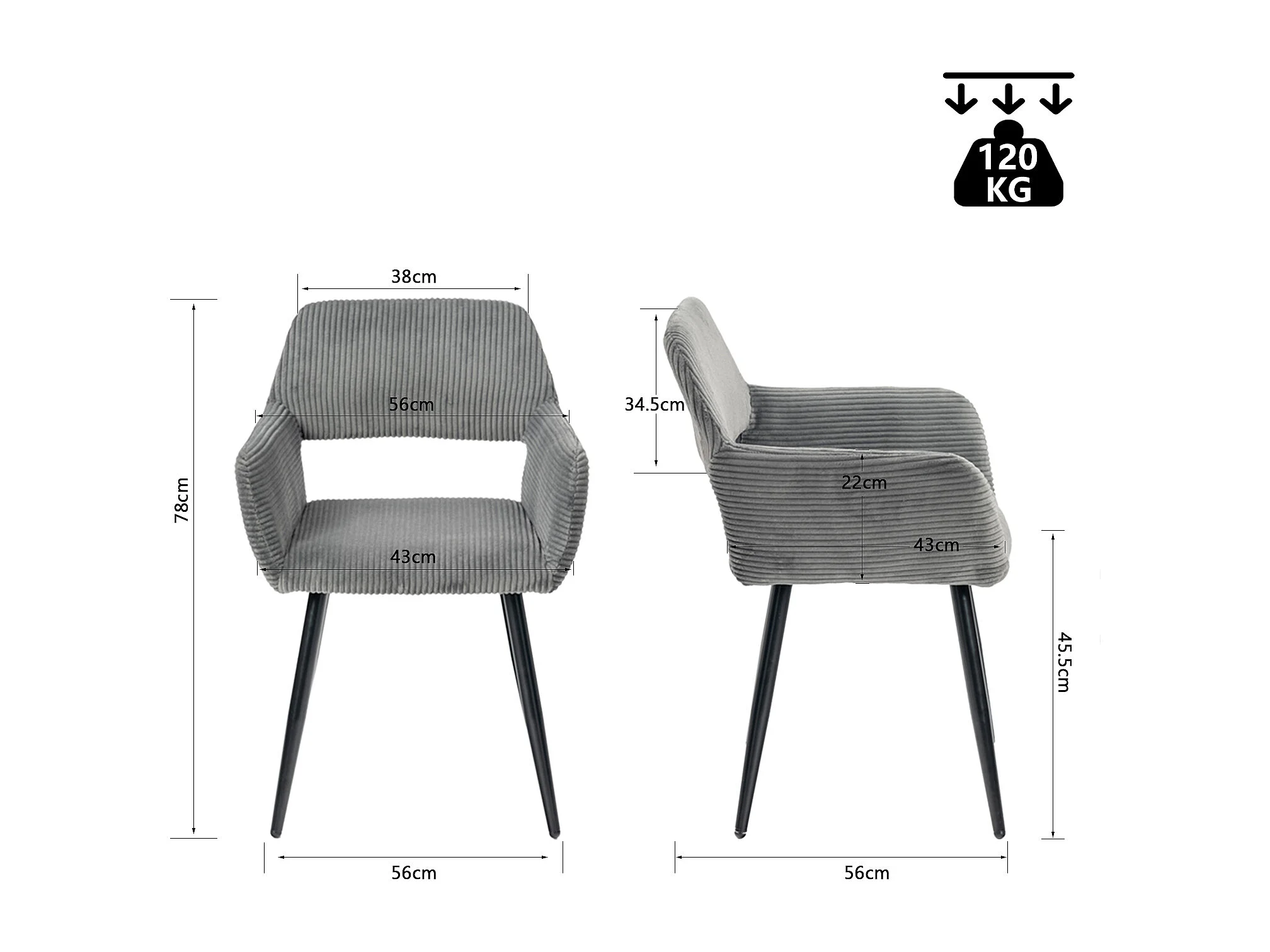 Lot de 2 chaises de salle à manger fauteuils en velours côtelé style scandinave,CROMWELL